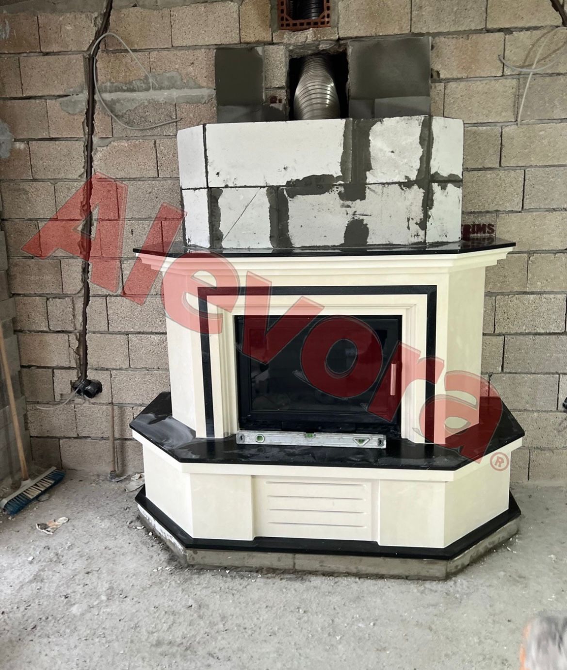 Kaplama öncesi bu ikinci aşamada gerçekleştirilen kaplamalı odunlu şömine montajı, ileride uygulanacak mermer, doğal taş veya özel tasarım kaplama detaylarının kusursuz görünmesi için gerekli altyapıyı oluşturur. Şömine çevresindeki yüzeyler, kaplama kalınlıkları ve bitiş payları hesaplanarak hazırlanmış; simetri ve ölçü bütünlüğü korunmuştur.