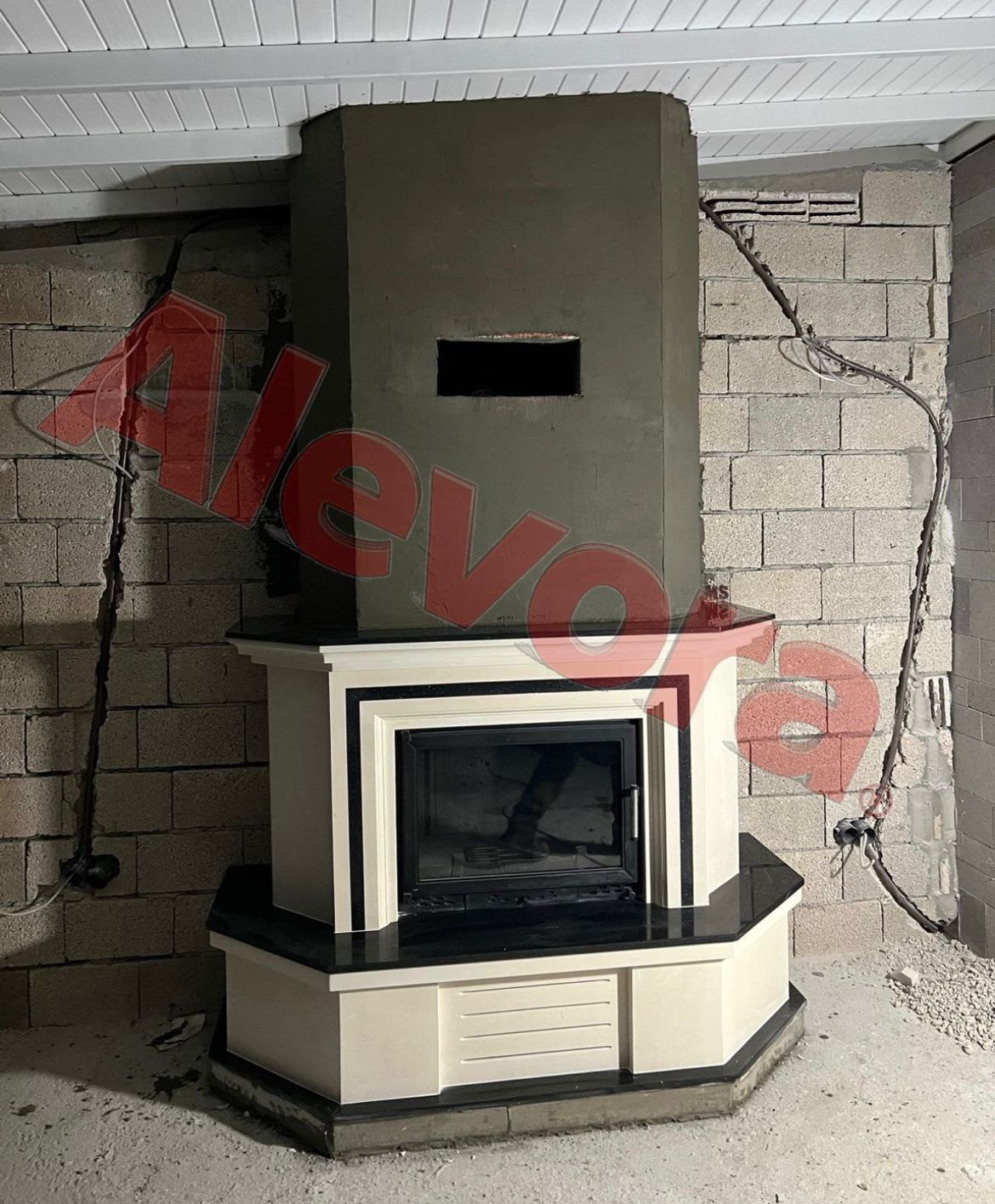 İzmir, Urla, Çeşme, Alaçatı, Seferihisar ve çevresindeki yazlık projelerde uygulanan kaplamalı odunlu şömine montajı çalışmalarında, üst gövde yüksekliği ve formu özellikle dikkatle ele alınır. Yazlık konutlarda tavan yükseklikleri ve çatı eğimleri farklılık gösterebildiği için, standart ölçüler yerine projeye özel çözümler üretilmesi gerekir. Bu uygulamada da üst gövde, mevcut yapı koşullarına uygun şekilde şekillendirilmiştir.