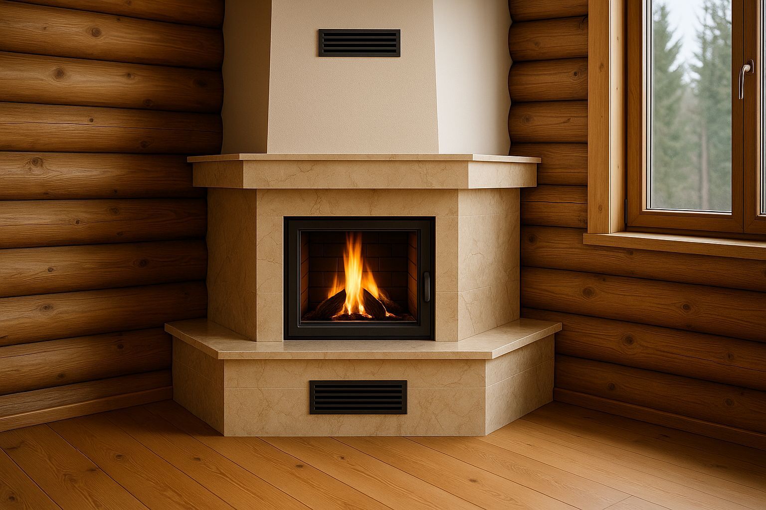 Alt ve üst menfez sistemi sayesinde soğuk hava alttan çekilir, hazne arkasında ısıtılarak üst menfezden mekâna verilir. Bu doğal sirkülasyon, sıcaklığın dengeli biçimde dağılmasını sağlar. Ortalama %80–85 verimlilik değeriyle klasik köşe tipi şömine modelleri, ekonomik ve çevre dostu bir ısınma çözümü sunar.