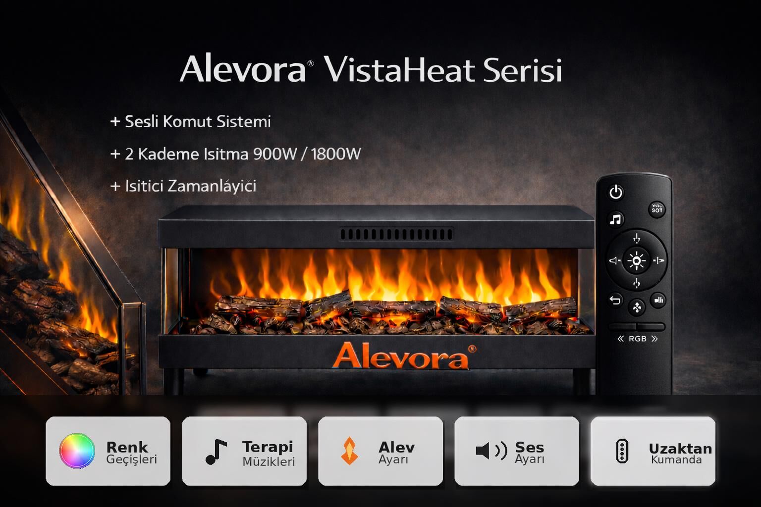 Alevora Şömine Vista Heat 160, ultra geniş panoramik yapısı, gerçekçi 3D alev sahnesi ve güçlü çift kademeli ısıtıcı sistemiyle büyük mekânlar için tasarlanmış üst segment bir elektrikli şömine çözümüdür. Sesli komut teknolojisi, ambiyans modu ve kapsamlı güvenlik donanımları sayesinde modern yaşam alanlarında konfor, teknoloji ve mimari estetiği aynı çizgide buluşturur.