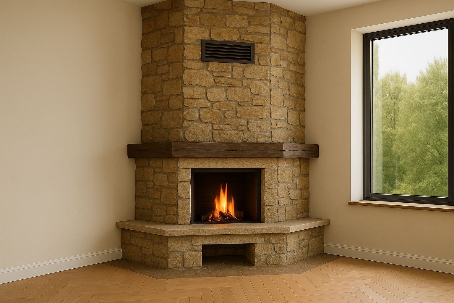 Alevora Şömine köşe tipi döküm şömine, L formlu salonlar, açık mutfaklı oturma odaları ve geniş teraslı villalar için ideal bir çözüm sunar. Rustik veya modern tasarımıyla hem estetik hem de fonksiyonel beklentileri karşılamak isteyen villa ve daire sahipleri için uygundur.