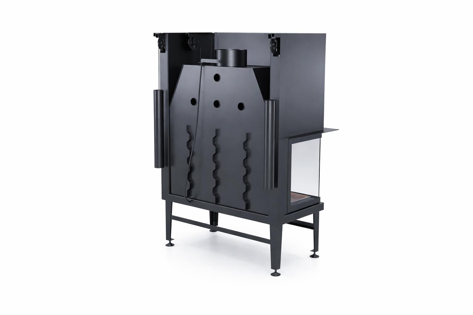 Isı performansı, üçlü hava yönetim sistemi sayesinde üst seviyeye çıkar. İki yönlü hava girişi, odunların tam verimle yanmasına yardımcı olur. Küllükten hava girişi, közlerin uzun süre sıcak kalmasını sağlar. Üç cepheli cam temizleme hava perdesi, geniş cam yüzeylerin daima parlak ve net görünmesini garanti eder. Bu sayede asansörlü üç taraflı şömine haznesi, düşük odun tüketimiyle yüksek ısı verimliliği sunarak, özellikle soğuk akşamüstlerinde yazlık bahçenizi sıcak ve konforlu kılar.