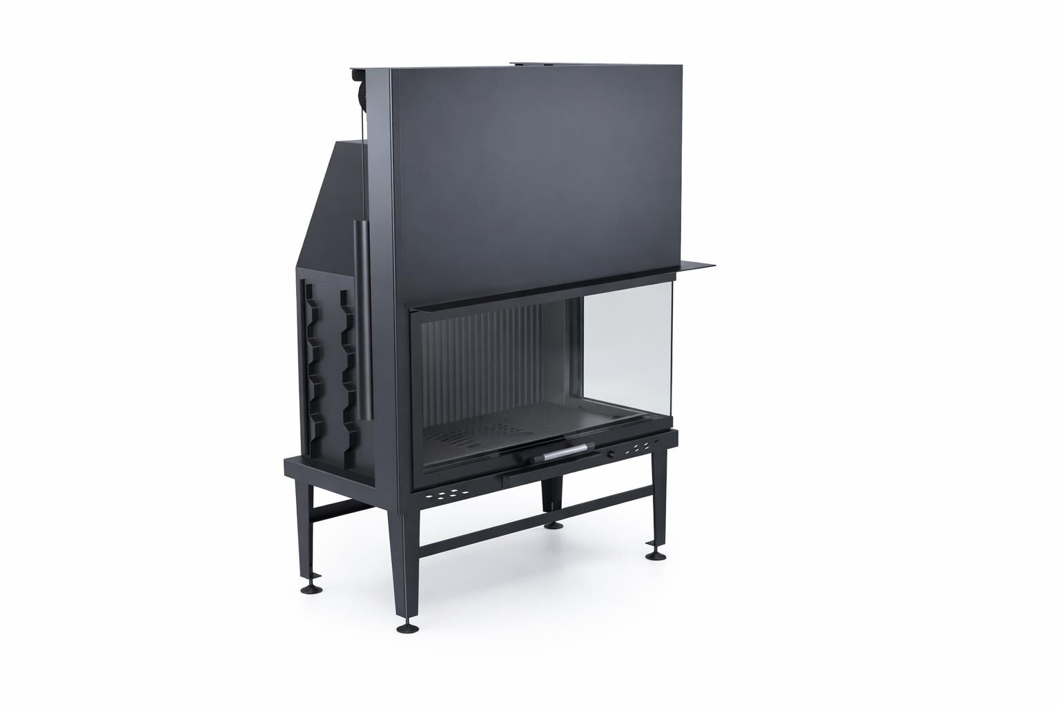 100 cm genişliğindeki hazne ölçüsü, kontrollü ve dengeli bir alev sahnesi sunarak stabil bir yanma performansı sağlar. Asansörlü kapak yapısı, hem açık hem kapalı kullanım seçenekleriyle esnek ve konforlu bir şömine deneyimi sunar.