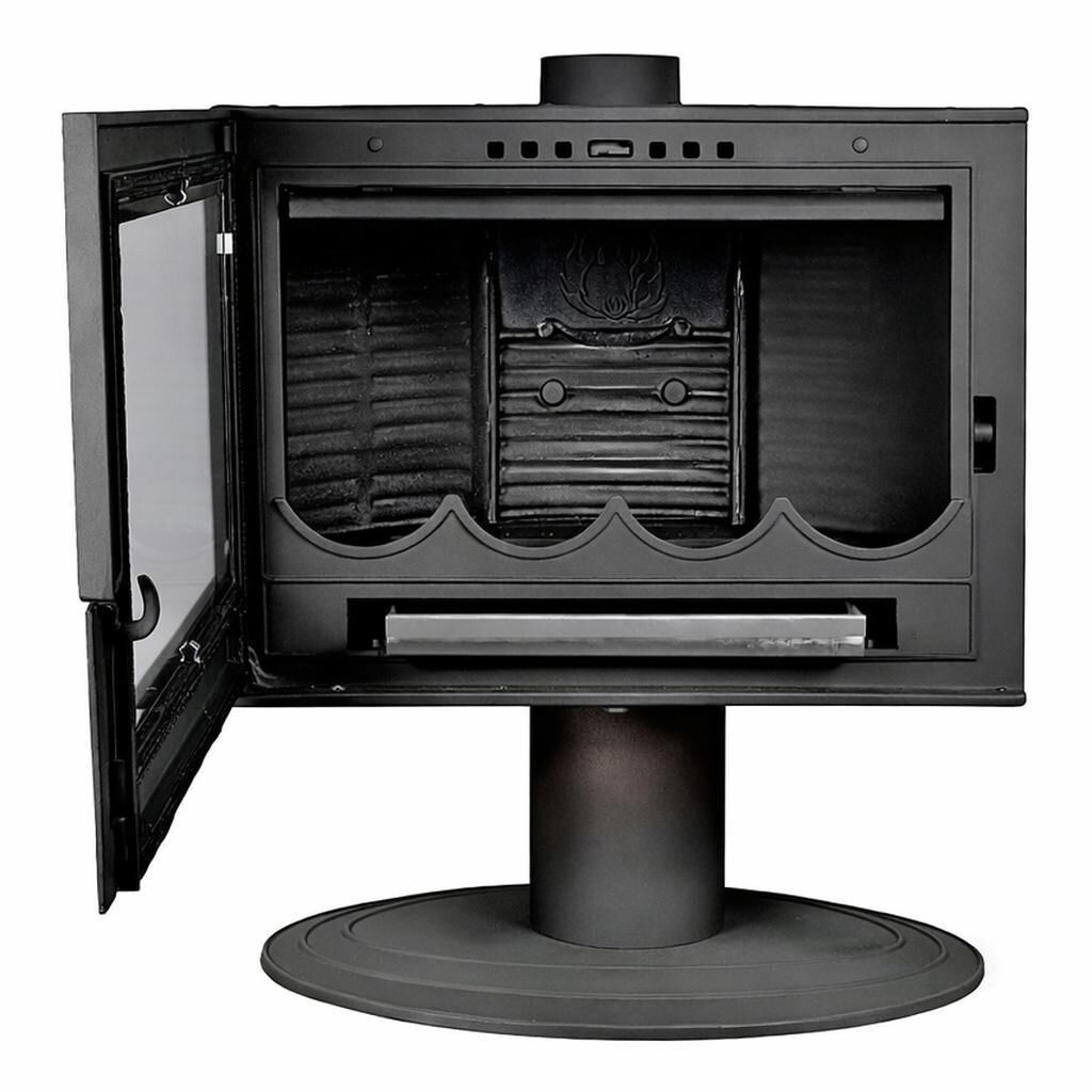 Geniş ocak ve yanma haznesi, büyük odun parçalarının rahatlıkla yerleştirilmesine olanak tanır ve uzun süreli yanma sağlar. Modelde bulunan çift yanma (ikincil yanma) sistemi, ilk yanmanın ardından açığa çıkan yanmamış gazların ikinci bir hava beslemesiyle tekrar yakılmasını mümkün kılar. Bu sayede yakıt verimliliği artar, odun tüketimi azalır ve daha temiz, dengeli bir yanma karakteri elde edilir.
