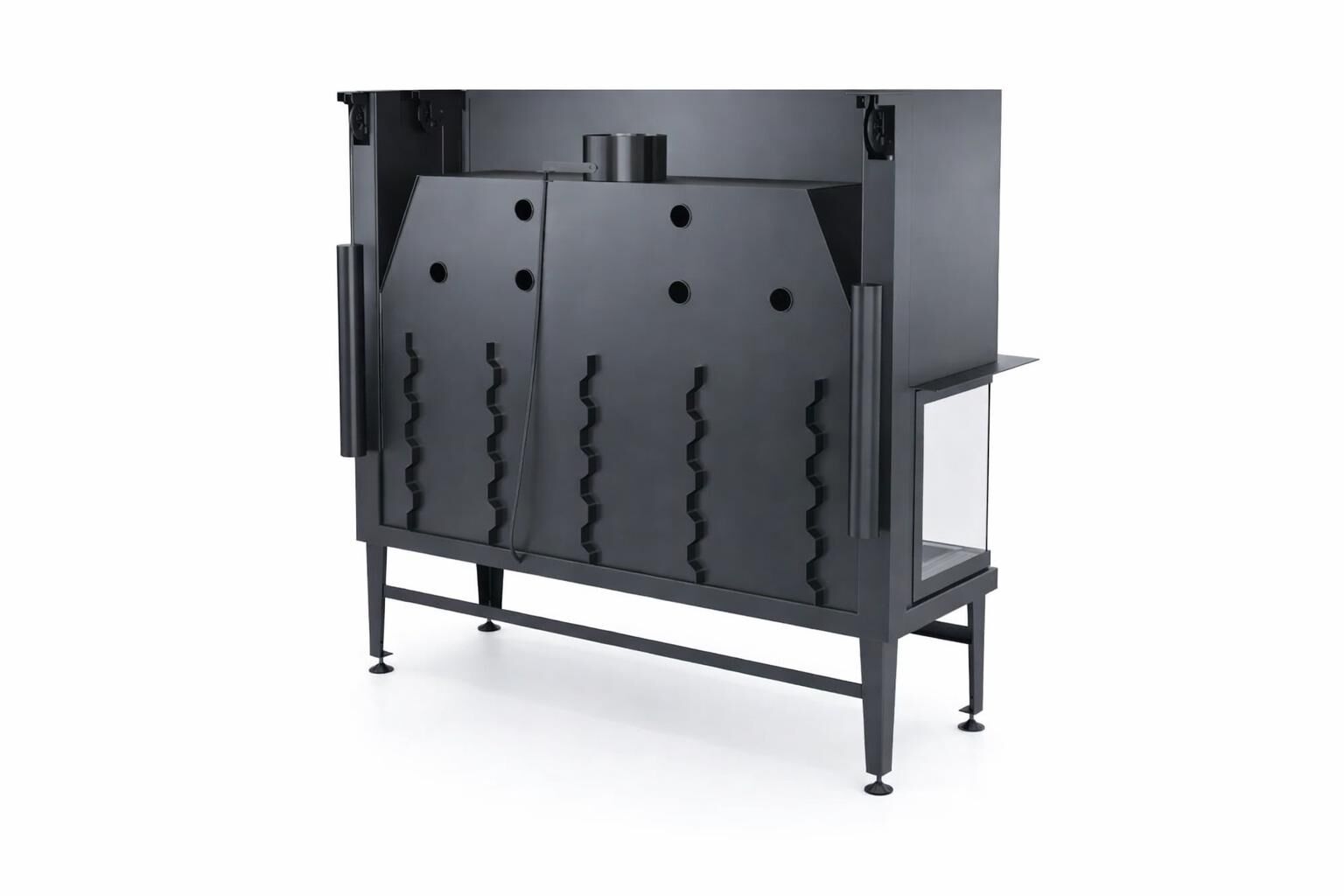 Gövdede kullanılan pik döküm hazne, 1200 °C’ye kadar yüksek sıcaklıklara dayanıklıdır ve uzun süreli kullanımda formunu korur. Güçlendirilmiş çelik paneller, ürünün genel dayanımını artırırken krom kulp detayları modern ve şık bir görünüm sunar. Bu sağlam yapı sayesinde asansörlü üç taraflı şömine haznesi, lüks konut projelerinde kalıcı bir değer oluşturur.