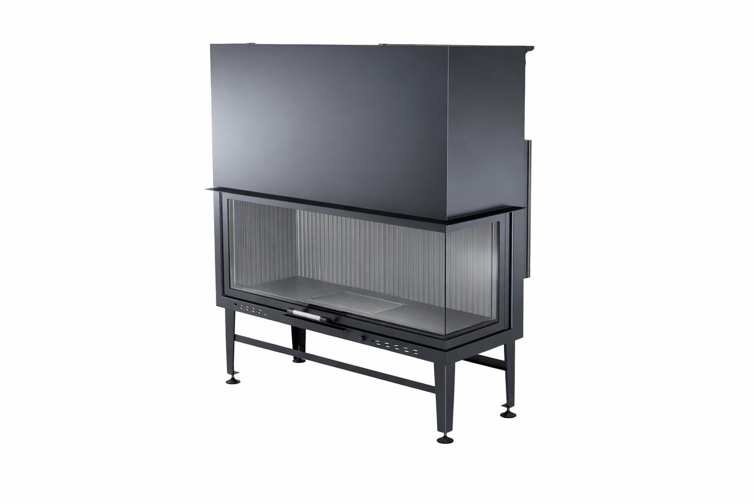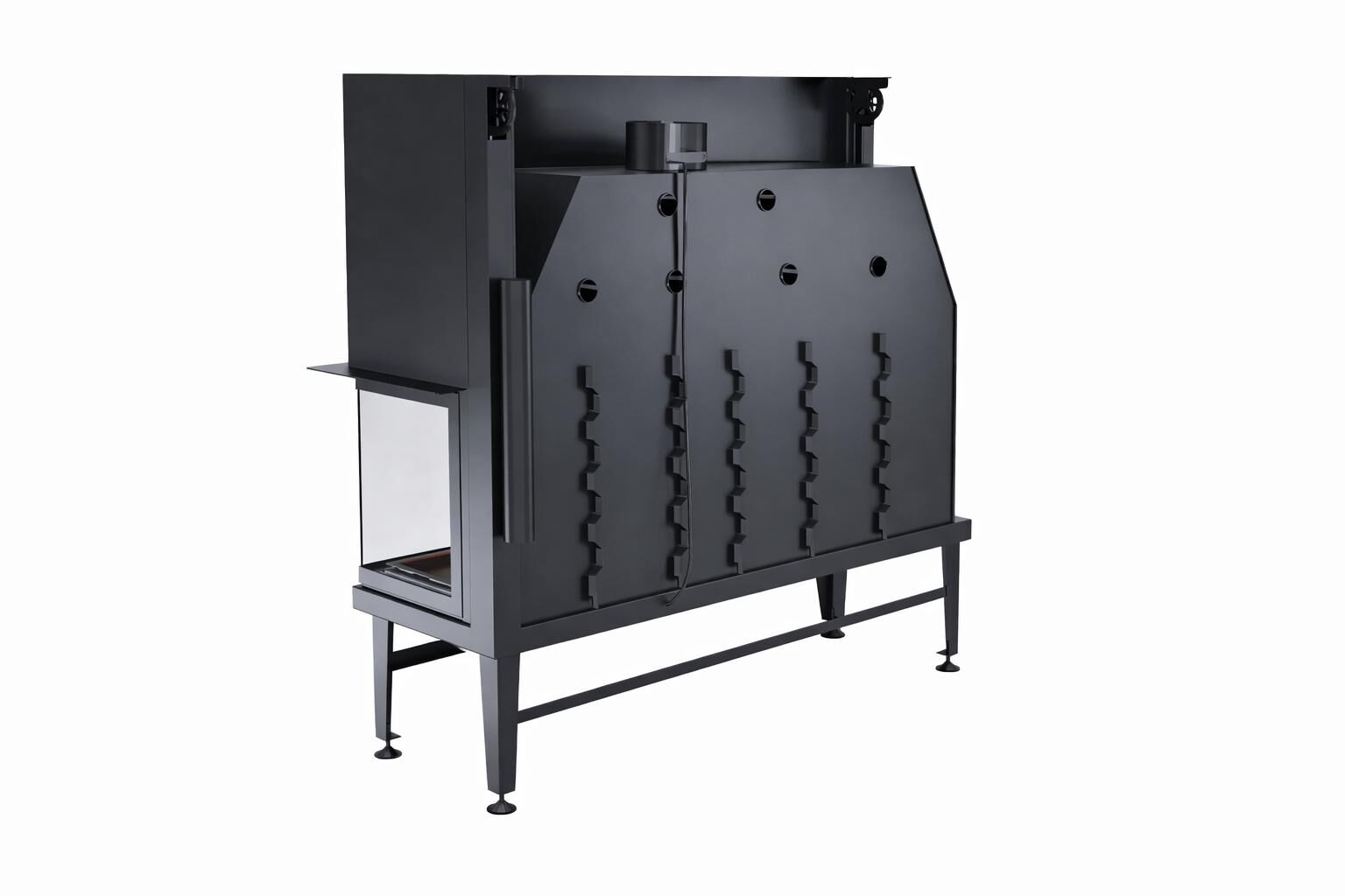Alevora Şömine 140 sağ camlı asansörlü şömine haznesi, yüksek sıcaklığa dayanıklı çelik konstrüksiyon gövdesi ve geniş seramik cam yüzeyleriyle uzun ömürlü kullanım için tasarlanmıştır. Sessiz çalışan teleskopik asansör mekanizması, camın yukarı doğru akıcı biçimde hareket etmesini sağlayarak odun ekleme sürecini zahmetsiz hâle getirir.
