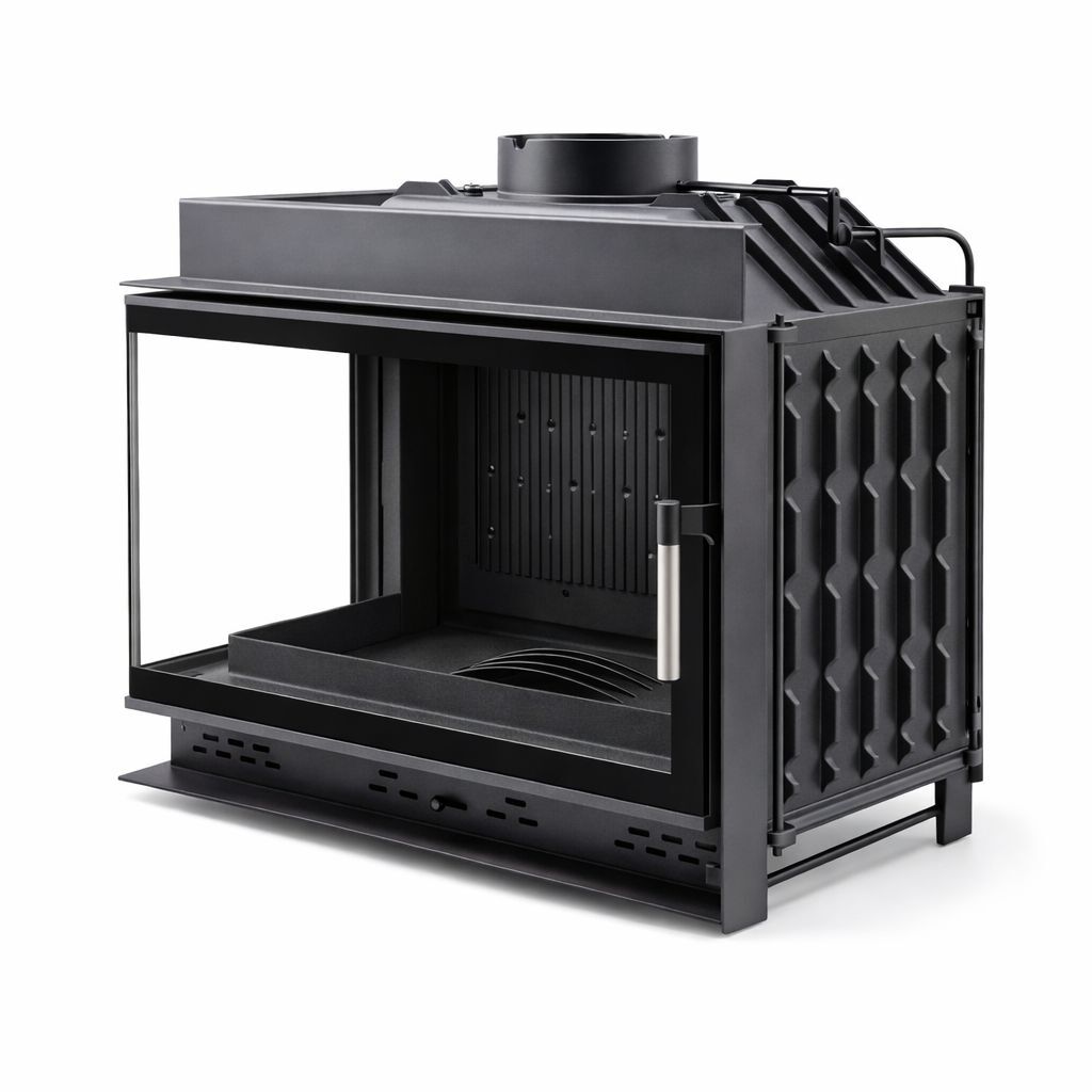 Döküm gövde, yüksek ısı döngülerinde stabil duruş sağlar. Siyah cam çerçeve, kaplama içinde premium vitrin algısı oluşturur. Sağ camlı köşe mimari, alevi iki cepheden izleme imkânı sunar ve mekânda derinlik etkisini artırır. Klape sistemi ve baca klapesi, yanma yönetiminde kontrol hissini güçlendirir. Yeşil Alev Sertifikası, standart odaklı altyapıyı destekler. Izgara takma yeri projeye göre opsiyoneldir. Yakıt planı, 60 cm’ye kadar odun uzunluğunu destekler.