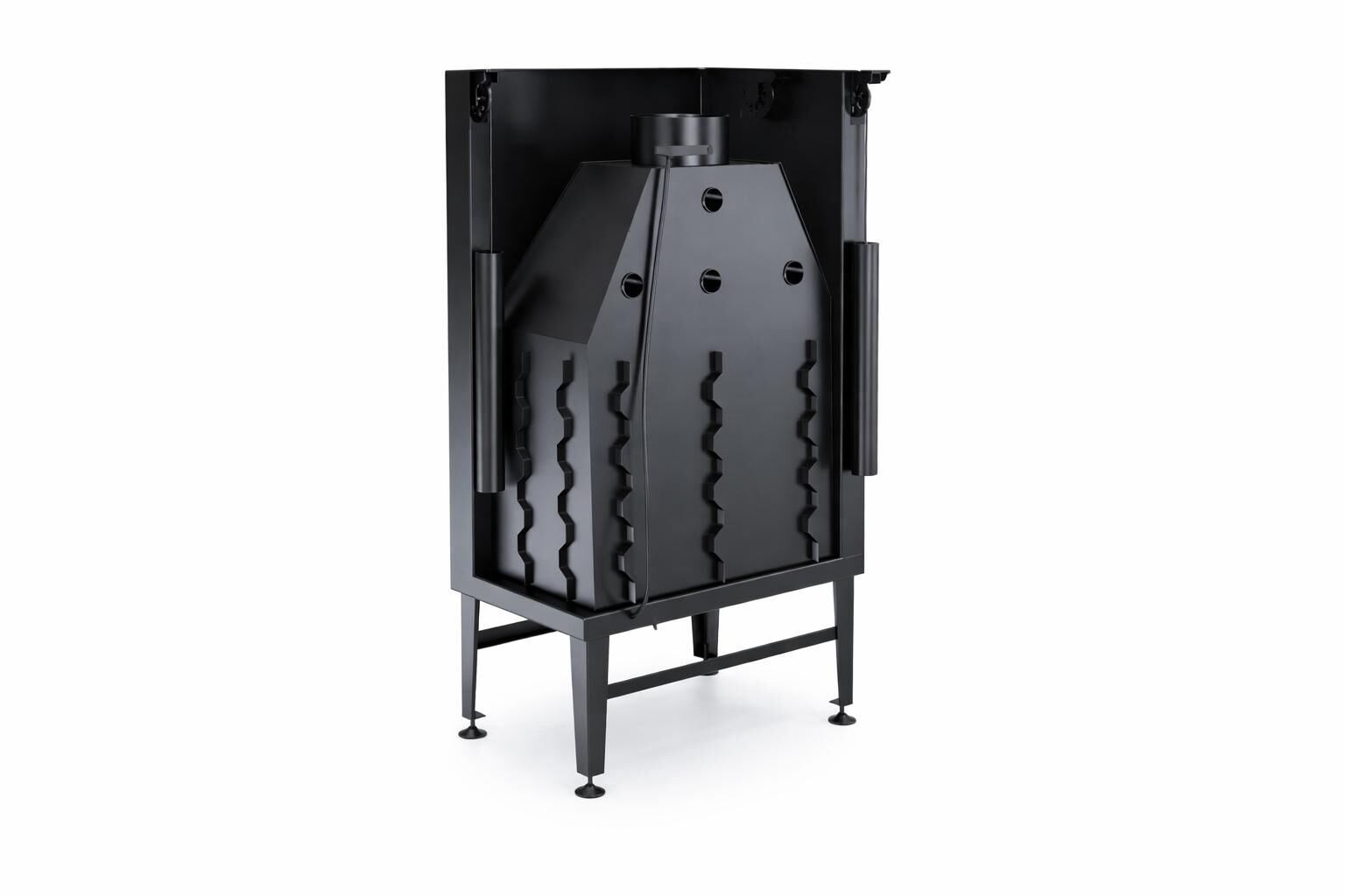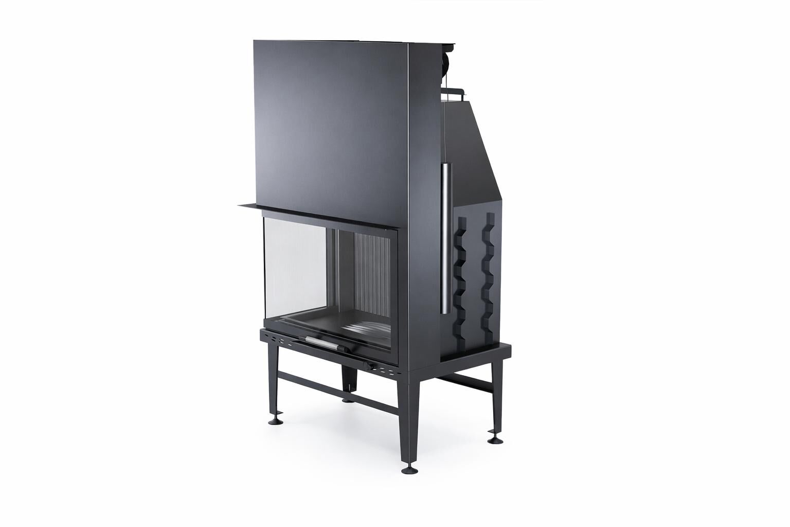 Düz tek cephe ile birlikte konumlandırılan sol cam sahnesi, alevi tek odak mantığıyla sunarken yan tarafta derinlik algısını güçlendirir. Açık asansörlü kapak sistemi, camın yukarı hareket etmesi sayesinde odun yükleme, kül kontrolü ve temizlik işlemlerini daha erişilebilir hâle getirir. Baca klapesi, çekiş yönetimini daha okunur kılarak yanma sürecinde kontrol hissini artırır. Yeşil Alev sertifikasıyla desteklenen verim yaklaşımı, yakıtın daha dengeli ve kontrollü kullanılmasını hedefler. Niş, kaplama ve menfez planına uyarlanabilir gövde yapısı, bu şömine haznesini farklı mimari projelere entegre edilebilir bir standart hâline getirir. Izgara takma alanının opsiyonel olması ise kullanım senaryosuna göre esneklik sağlar.