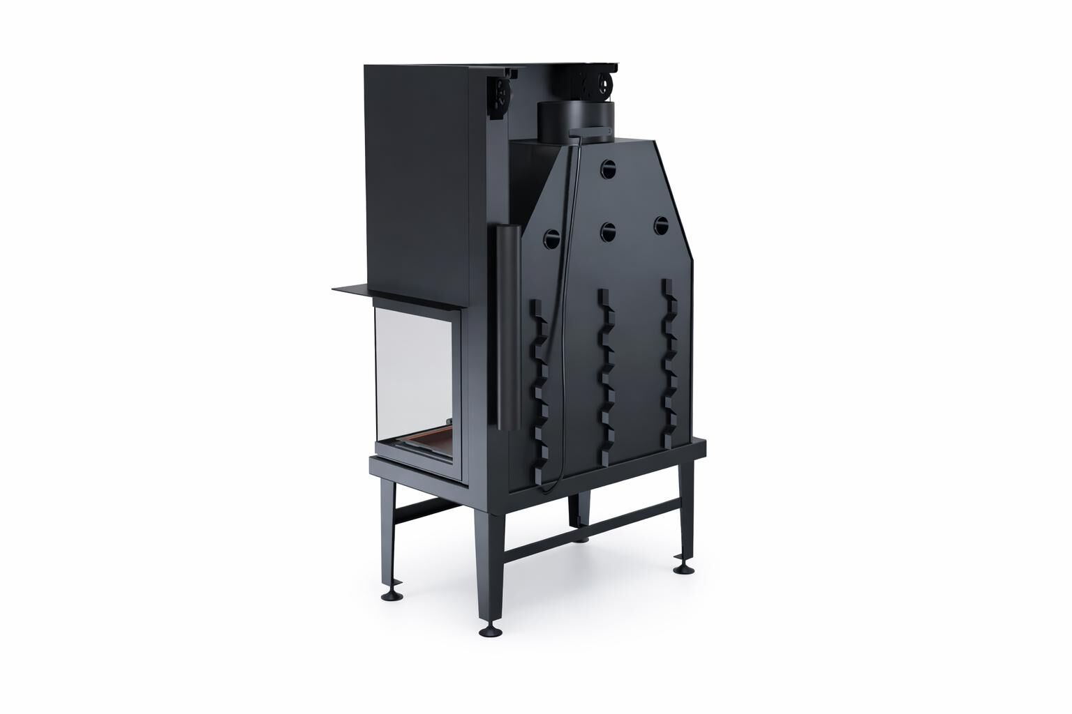 Sağ cam panelin yana açılabilir yapısı, günlük temizlik işlemlerini ve odun yüklemeyi pratik hâle getirir. Cam temizleme hava perdesi sayesinde geniş cam yüzey, kullanım süresince daha uzun süre temiz kalır ve ateş her açıdan net şekilde izlenebilir.