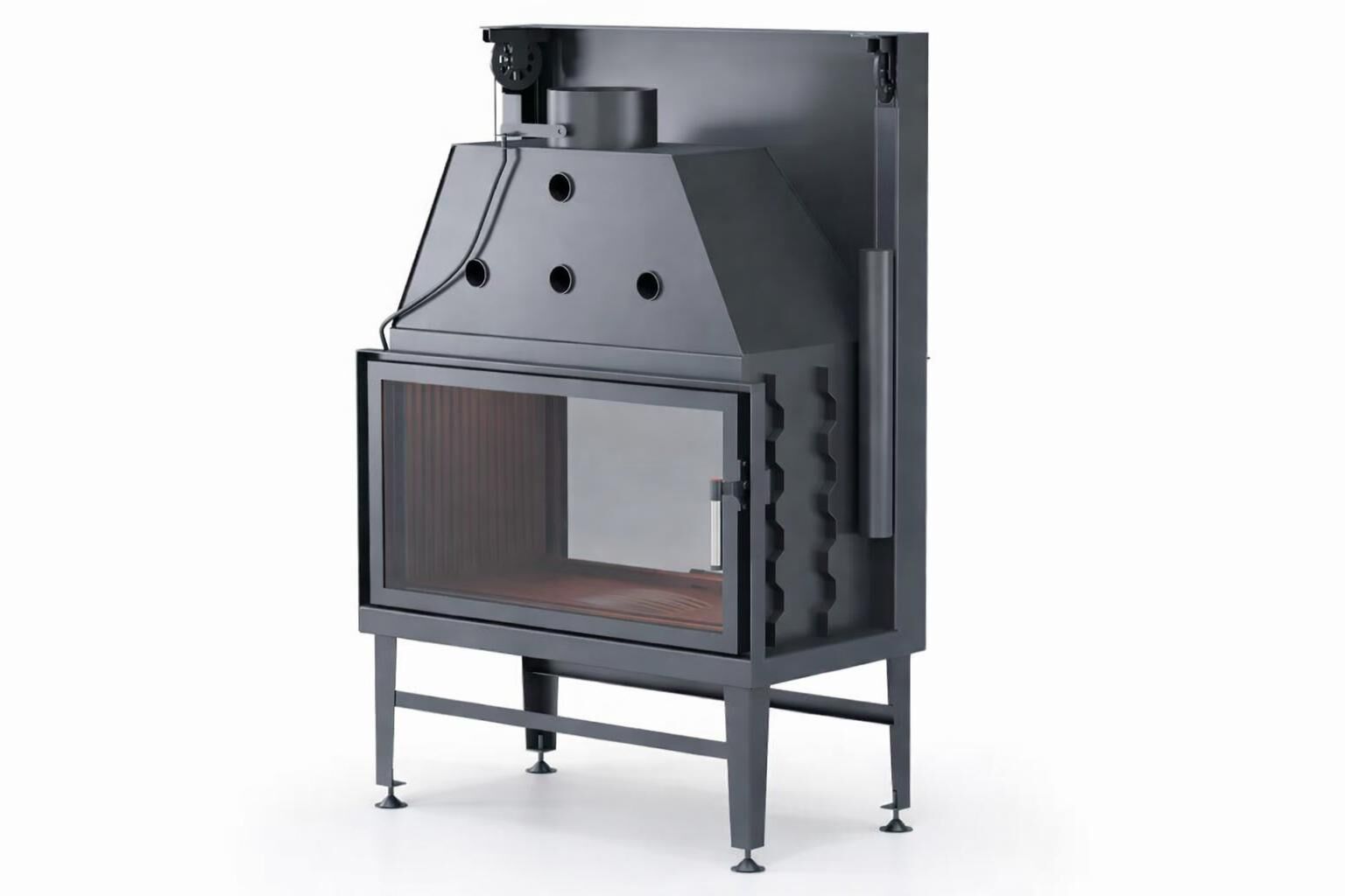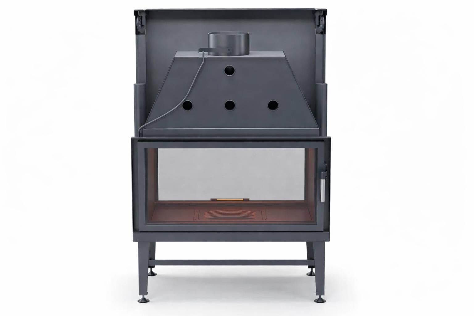 Gövde, pik döküm hazne ve güçlendirilmiş çelik panellerden üretilmiştir ve 1200 °C’ye kadar dayanıklıdır. Kapalı konumda 240 dakika kesintisiz yanma özelliği, kış bahçelerinde ve teras alanlarında uzun süreli ısıl denge sağlar. Bu yapı, hem ekonomik hem de uzun ömürlü bir kullanım deneyimi sunar.