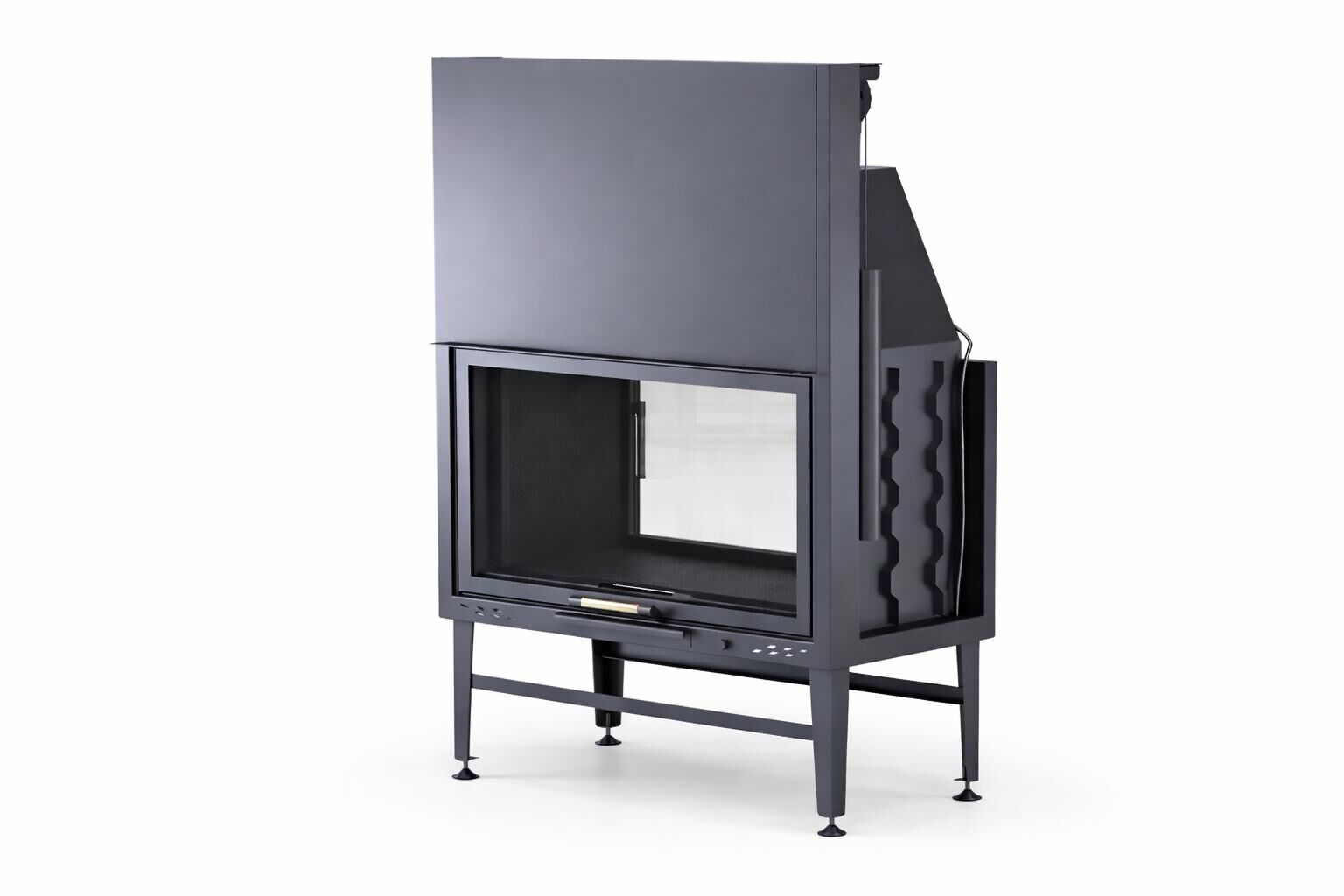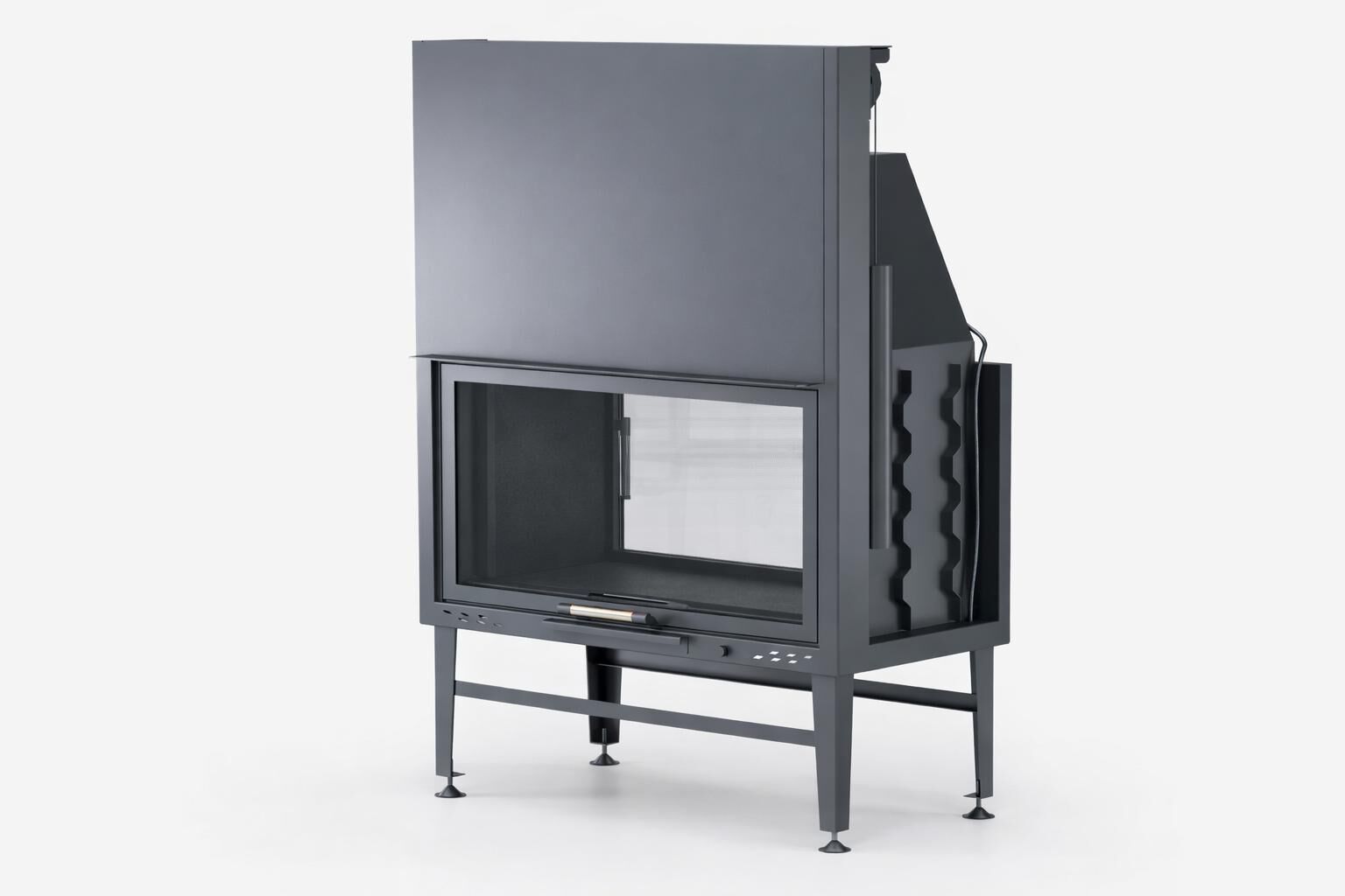 Ürün, doğal taş, granit ve ahşap kaplamalarla uyumlu modern bir görünüme sahiptir. Zarif krom kulp detayları dekoratif şıklığı tamamlar. İç ve dış mekân arasında görsel bir köprü oluşturan asansörlü çift taraflı şömine haznesi, kış bahçelerini ve terasları davetkâr bir odak noktası hâline getirir.