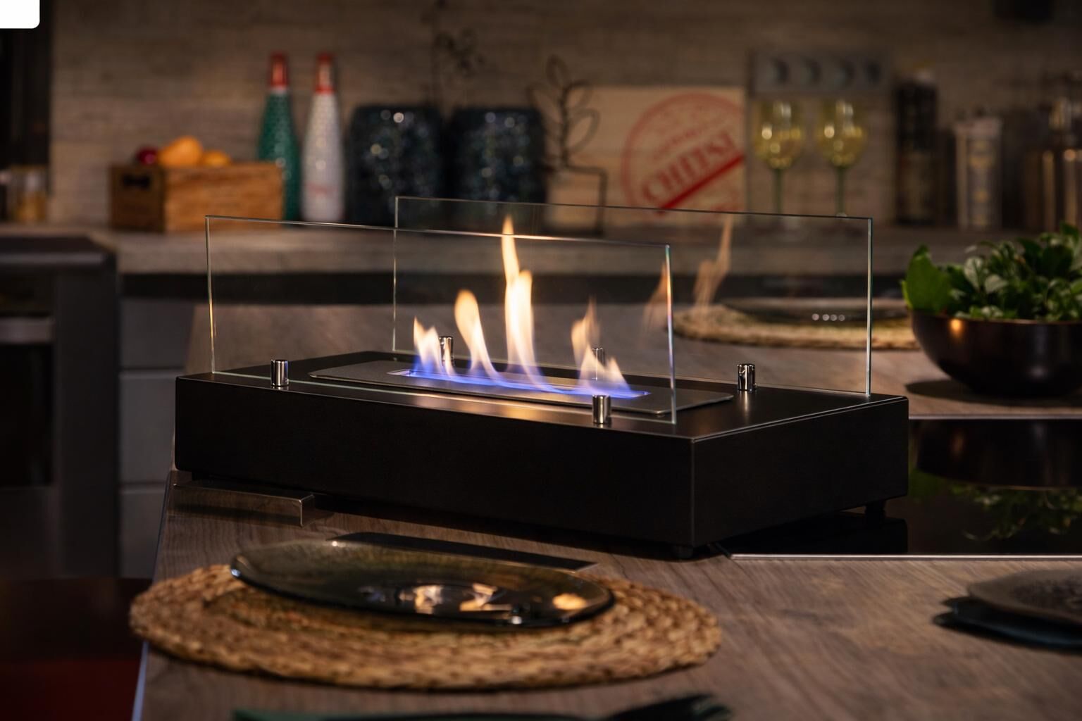 Alevora® Art Design Bioethanol Şömine, modern ve lineer tasarımıyla masaüstü bioethanol şömine kategorisinde premium segmentte konumlanır. Uzun paslanmaz çelik brülör sistemi ve iki taraflı temperli cam koruma paneli sayesinde hem güvenli hem estetik bir alev deneyimi sunar.