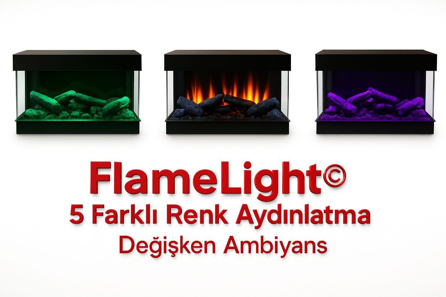 Alevora Şömine mühendisliğinin bir ürünü olan Coza RZN140, derinlik artırıcı 3D odun dokusu, parlak kor geçişleri ve Full HD LED optik panel bir araya geldiğinde, alev hareketini hem geniş hem de son derece doğal ve canlı bir formda yansıtır. Üç cepheli cam yapıda ilerleyen alevler, adeta yüzer bir ışık ve hacim etkisi oluşturarak bu elektrikli şömine modelini sıradan bir dekoratif üründen çıkarır; mekânın ruhunu ve enerjisini belirleyen sofistike bir sanat eseri ve atmosfer öğesine dönüştürür. Coza RZN140, hem gün ışığında hem de gece aydınlatmalarında kusursuz bir derinlik algısı ve sıcak bir ambiyans sunar.