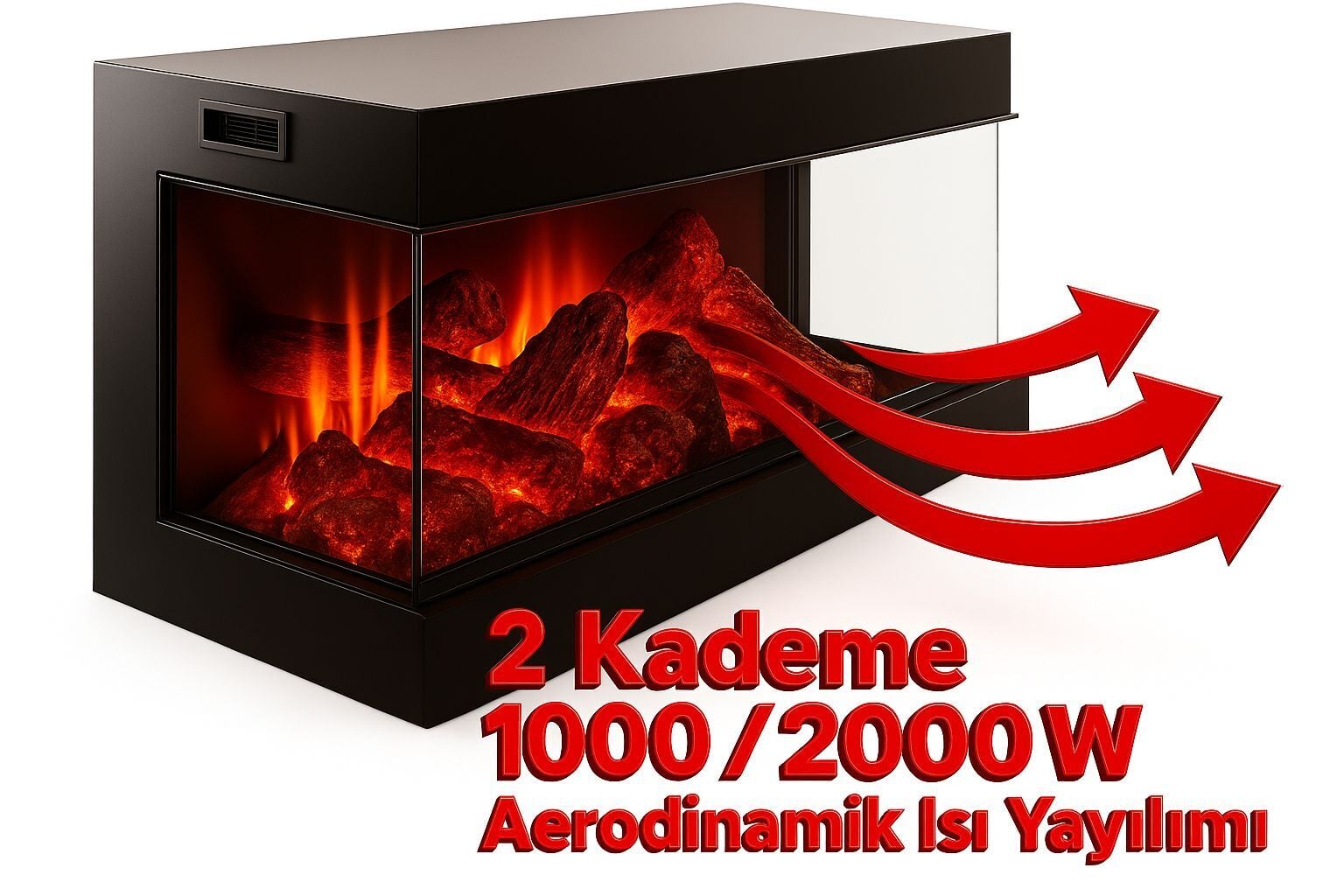 Isıtıcı performansında, iki kademeli güç sistemi (1000 W / 2000 W), 15–18 m²’lik yaşam alanlarında dengeli, homojen ve konforlu bir ısı dağılımı sağlar. Sessiz hava yönlendirme yapısı, sıcak havayı alev sahnesini bozmadan verimli bir şekilde ileri doğru taşır. Isıtma fonksiyonunun dekoratif alevden tamamen bağımsız çalışabilmesi, bu modeli dört mevsim, her türlü kullanım senaryosuna uygun, çok yönlü bir elektrikli şömine haline getirir.