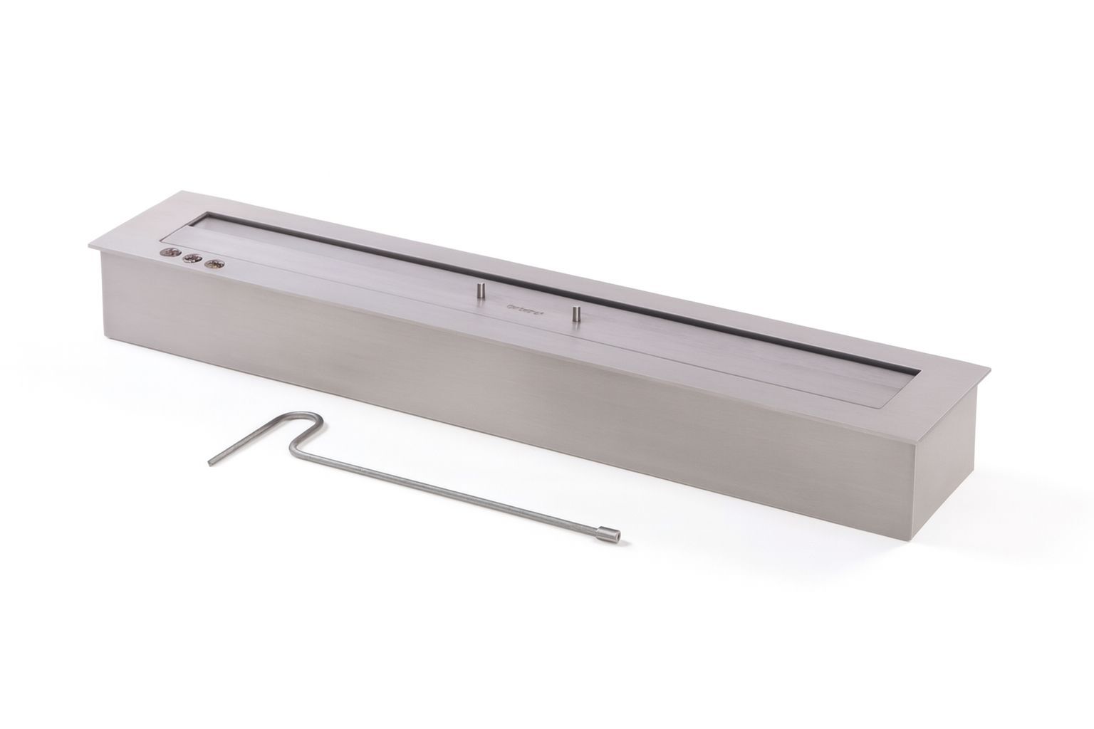 Design Burner Serisi (100 cm), daha küçük alanlarda etkili ısı sağlayan modern ve şık bir şömine çözümüdür. 8 litrelik yakıt kapasitesi ile uzun süreli kullanım imkânı sunar ve 65 m²’ye kadar etkili ısı dağılımı sağlar.