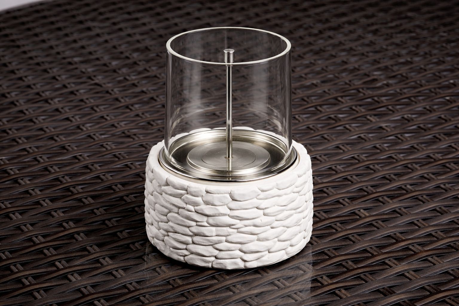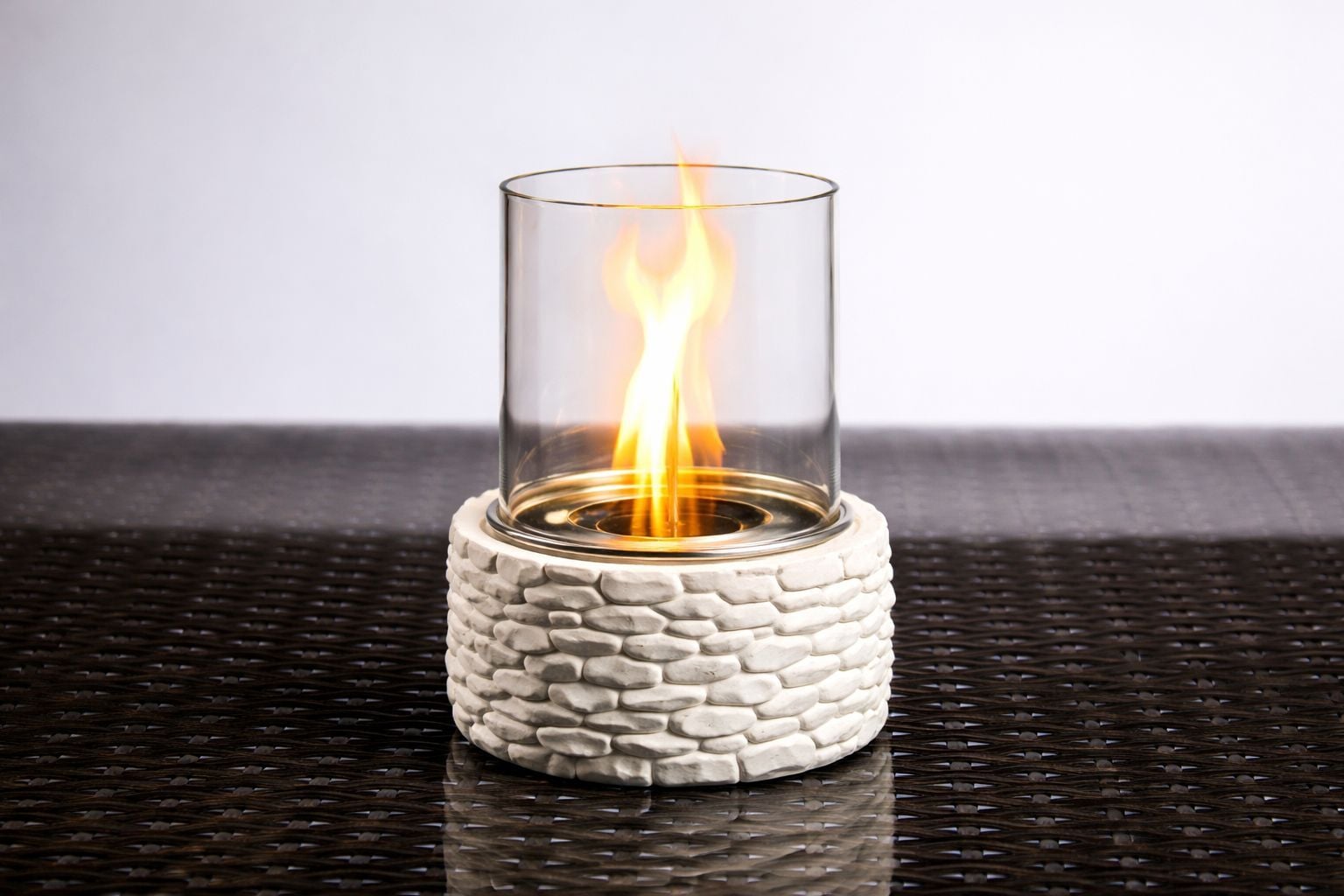 Alevora® Fire Stone Bioethanol Şömine, taş görünümlü dekoratif gövde tasarımı ve silindirik temperli cam koruma sistemi ile yaşam alanlarına doğal ve sıcak bir atmosfer kazandırmak için tasarlanmış masaüstü bioethanol şömine modelidir.