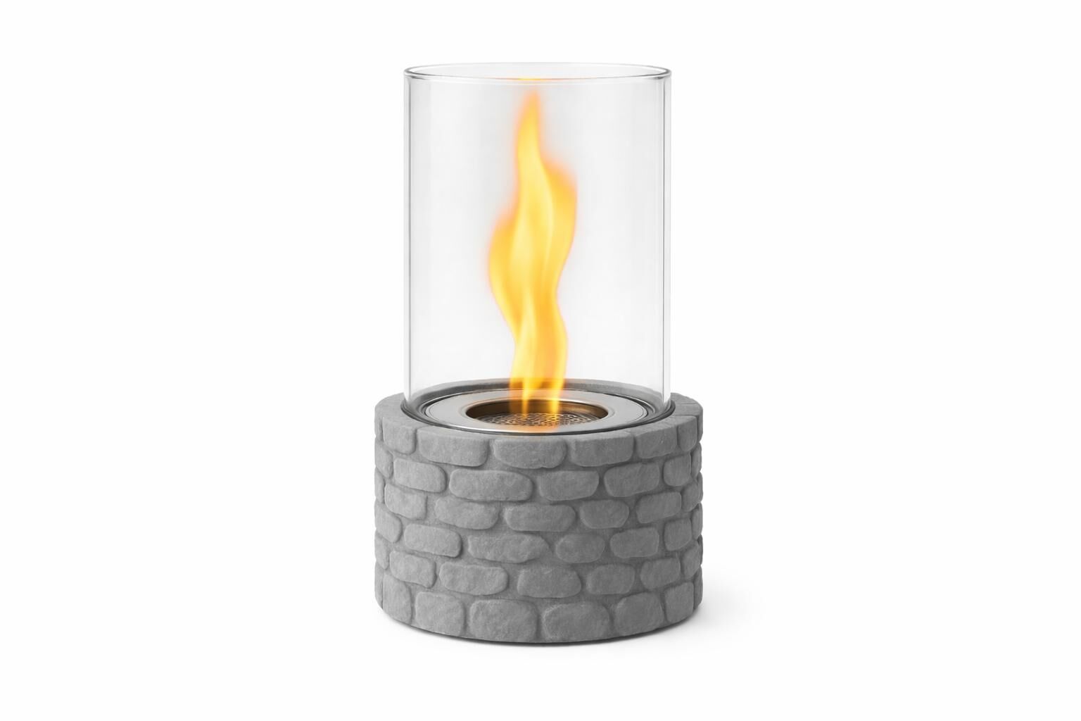 Ürün ölçüleri Ø: 20 cm ve yükseklik 26 cm olup, kompakt ve taşınabilir tasarımı sayesinde salon, balkon veya teras gibi farklı alanlarda rahatlıkla kullanılabilir. Bioethanol yakıt sistemi sayesinde duman ve kül üretmez, temiz ve güvenli bir ateş deneyimi sunar.