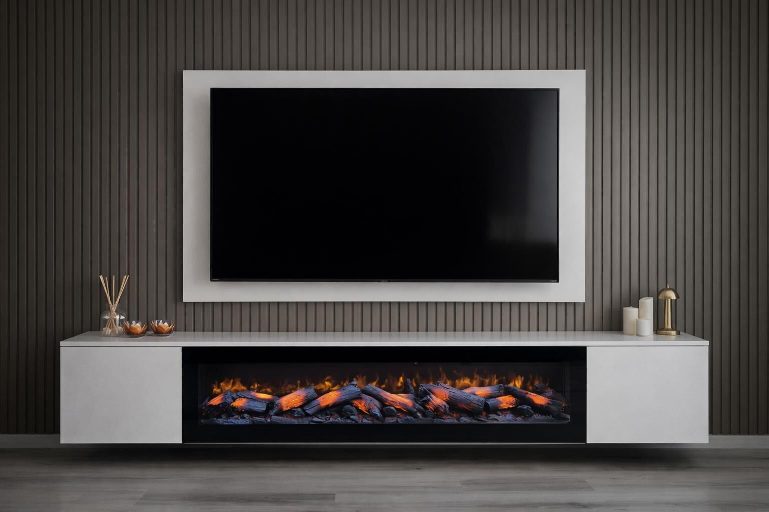 PureLine 150’nin geniş panel yüzeyi, çok katmanlı alev motorunun ürettiği ritmik hareketi daha etkileyici şekilde sunar. Alev yükseldikçe 3D odun dokusundaki gölgeler derinleşir, sahne boyunca yayılan RGB ışık geçişleri mekânın ruhuna göre değişen bir atmosfer oluşturur. Bu yapı, elektrikli şömine kullanımını sıradan bir dekor unsuru olmaktan çıkarır ve modern bir yaşam alanının mimari imzası haline getirir.