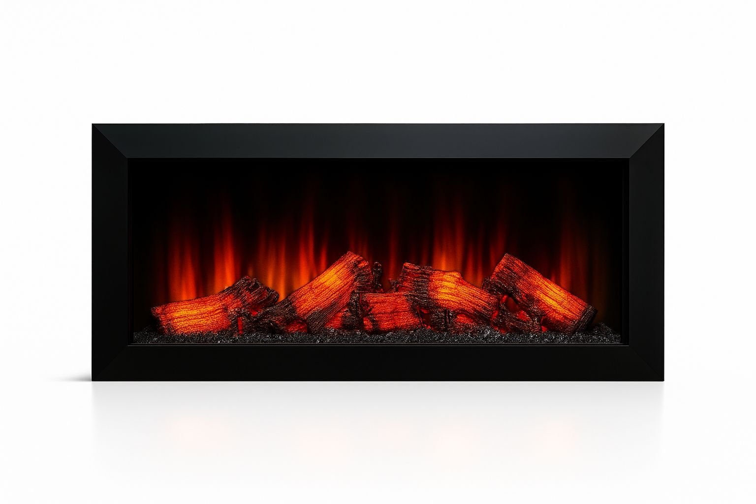 Nada KRN 100’ün yüksek çözünürlüklü LED optik paneli; 3D odun dokusu, parlak kor detayları ve çok katmanlı ışık derinliğiyle birleşerek gerçek alev hissine yakın bir sahne üretir. Geniş 100 cm yüzey boyunca ilerleyen alev hareketi, mekâna sıcaklık hissi katan, geniş hacimli bir optik etki oluşturur. Sahne, metal çerçevenin içinde berrak şekilde konumlanır ve bu sayede elektrikli şömine, bulunduğu alanda mimari bir çerçeve gibi çalışır.