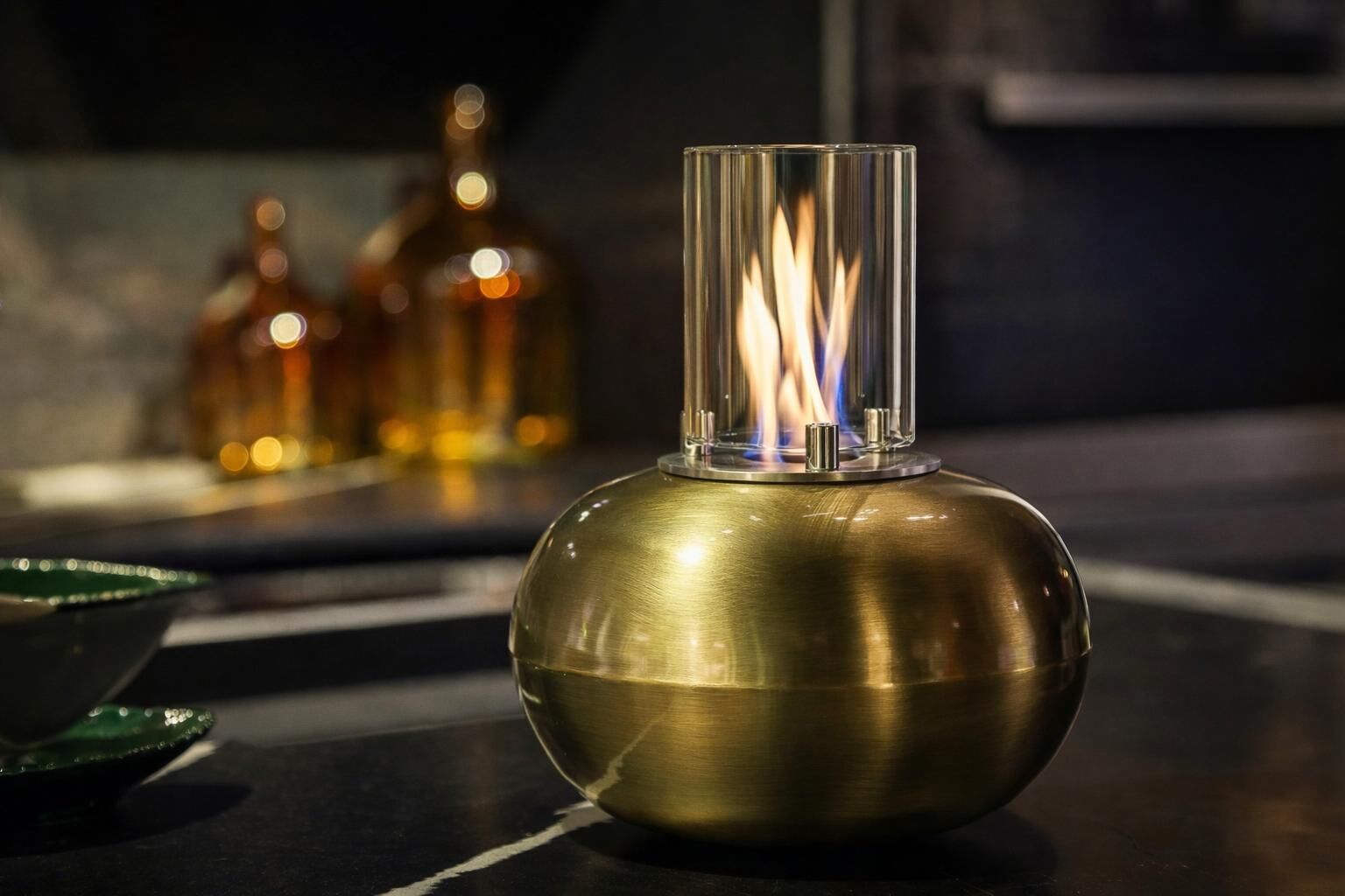 Alevora® Antique Bioethanol Şömine, küresel formu ve antique metal yüzeyiyle klasik ile modern tasarımı bir araya getiren özel seri masaüstü bioethanol şömine modelidir.