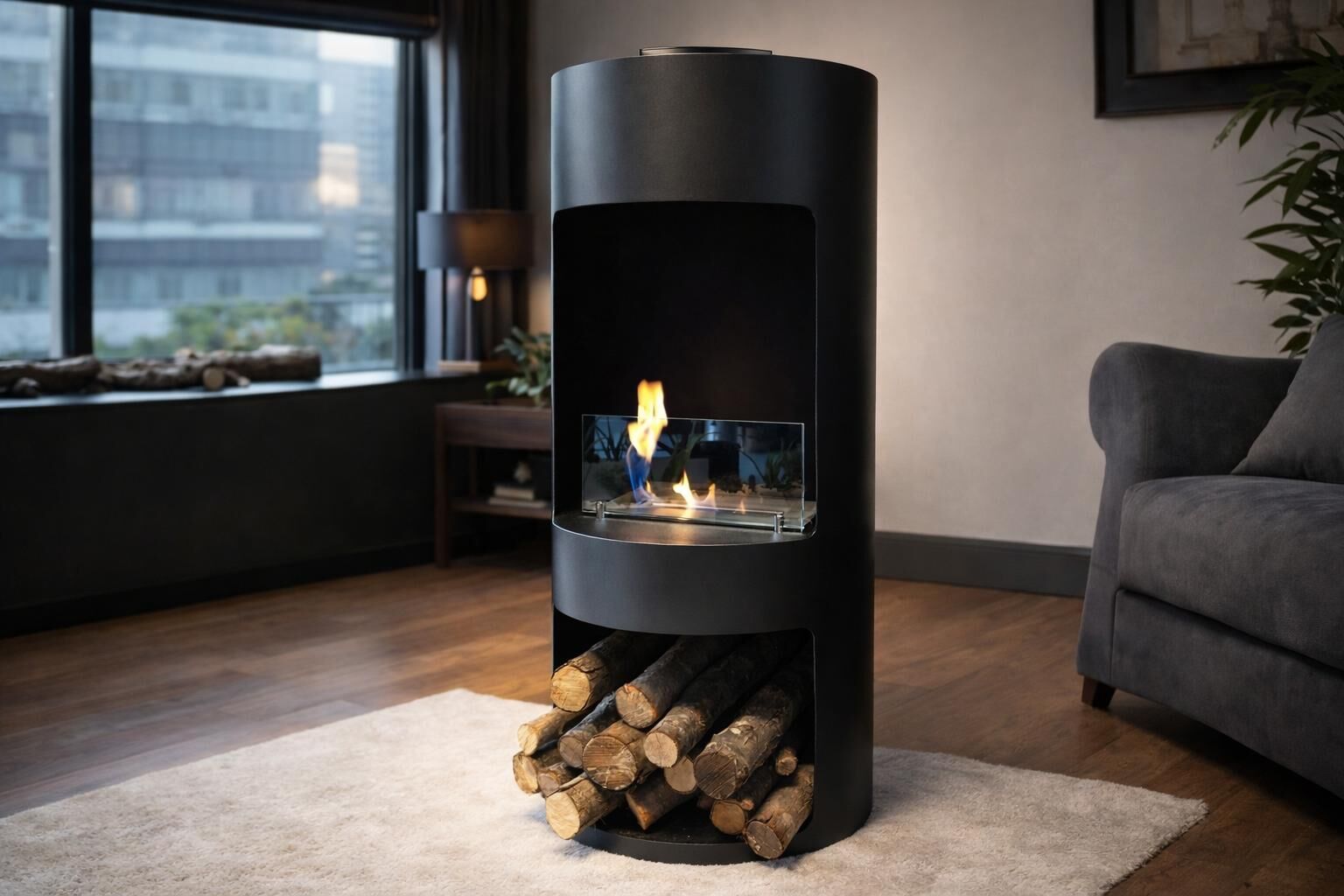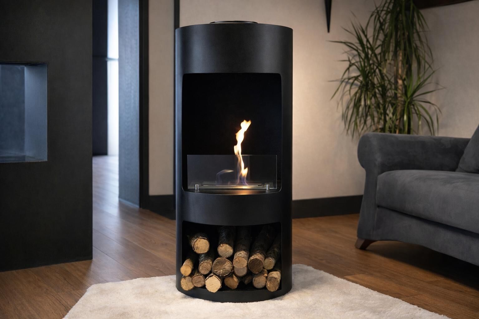 Alevora Şömine Cask Taşınabilir Bioethanol Şömine, silindirik gövdesi ve ön cephede konumlandırılmış açık alev tasarımı ile mekânda güçlü bir odak noktası oluşturur. Siyah mat yüzeyi, cam korumalı bioethanol haznesi ve dengeli oranları sayesinde hem modern hem zamansız bir estetik sunar.