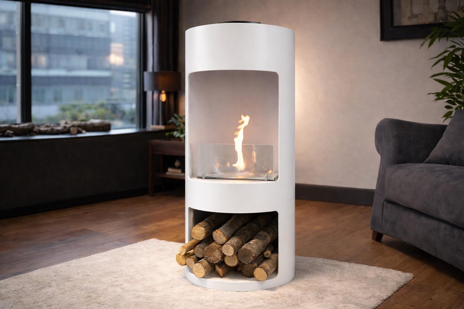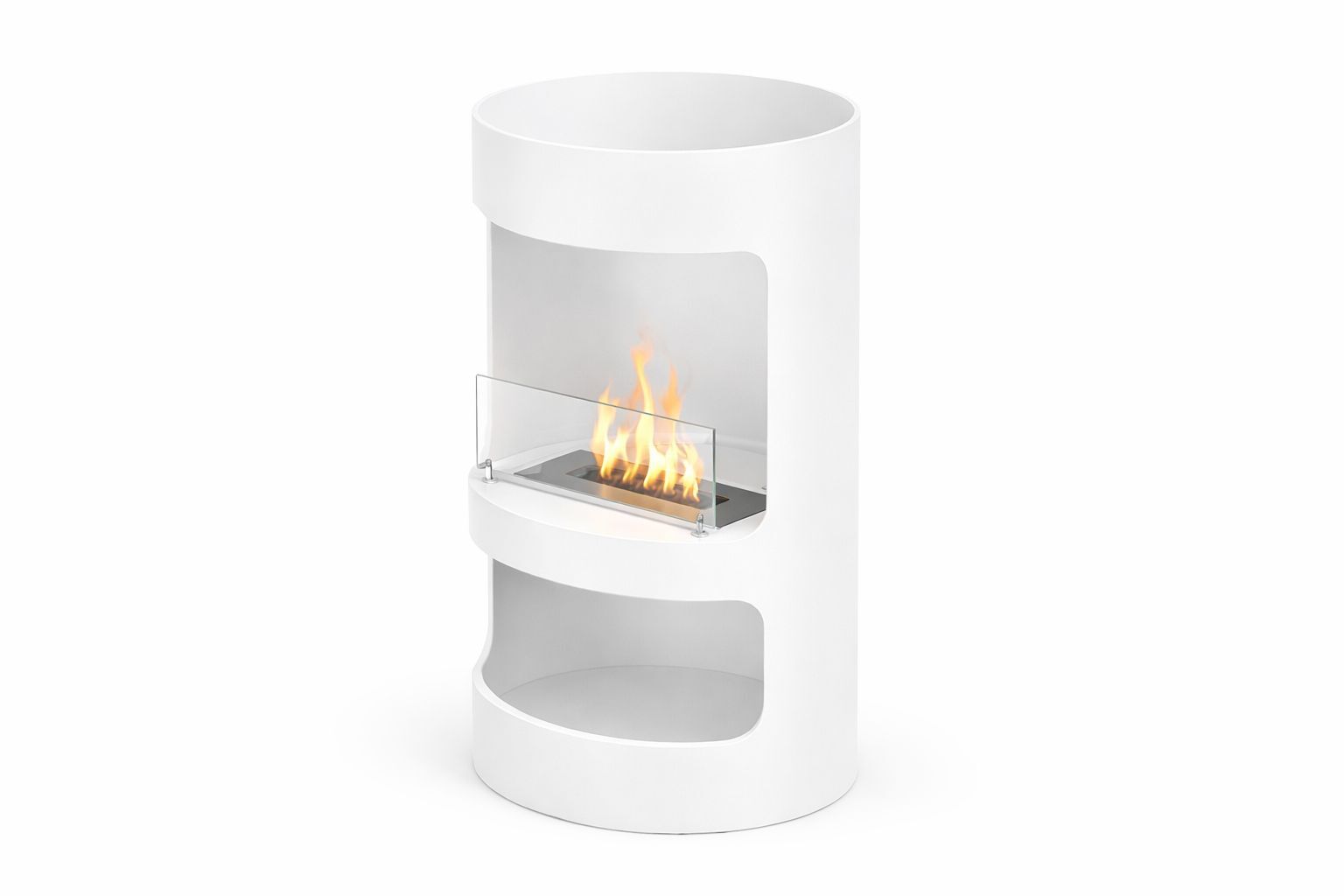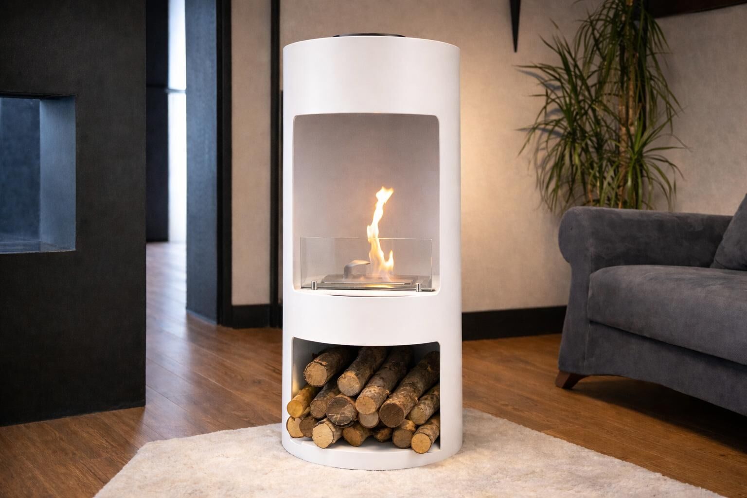 Alevora Şömine Cask Taşınabilir Bioethanol Şömine, silindirik gövdesi ve modern oyuk formu ile bulunduğu mekânda mimari bir obje etkisi yaratır. İç bölümde konumlandırılmış bioethanol brülör sistemi sayesinde gerçek alev deneyimi sunarken; cam koruma paneli ile güvenli ve kontrollü kullanım sağlar.