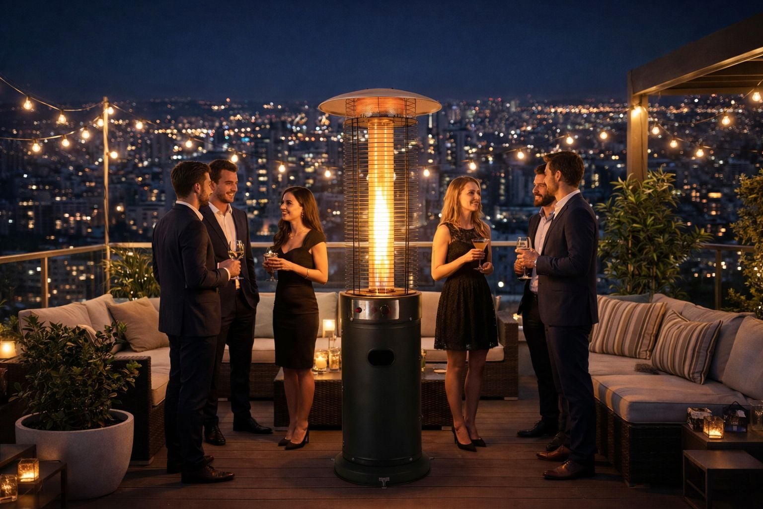 Restoran terasları, otel bahçeleri, kafe alanları, villa verandaları ve ticari projeler için tasarlanmış bu model; yüksek ısı verimi ve dengeli dağılım sistemi sayesinde geniş alanlarda etkili performans sunar. Alevora® mühendislik yaklaşımı ile üretilmiş gövde yapısı, uzun ömürlü ve güvenli kullanım sağlar.