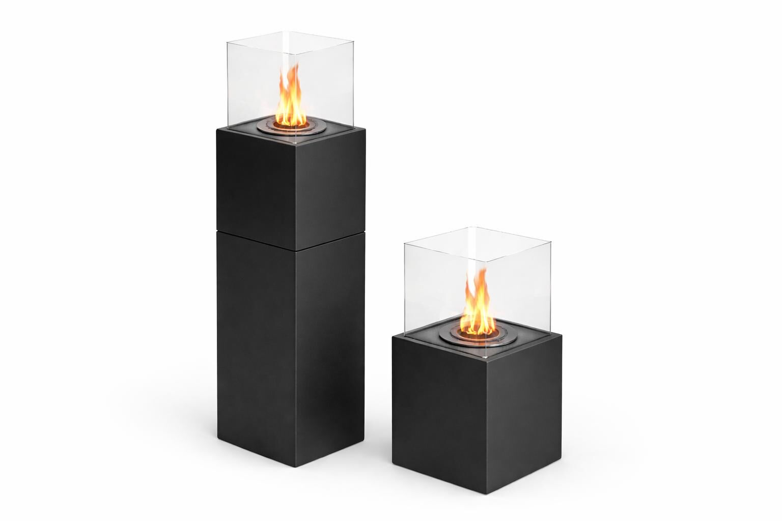 Dikey tasarımı sayesinde zeminde az yer kaplar ancak güçlü bir alev etkisi sunar.