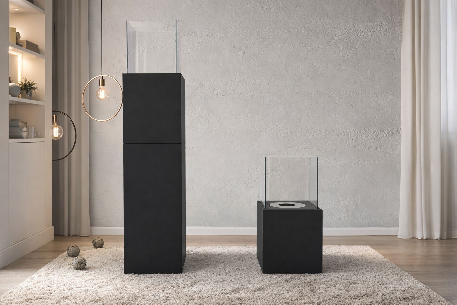 Alevora Şömine Panora Taşınabilir Bioethanol Şömine, dikey mimari formu ve cam korumalı gerçek alev sistemiyle yaşam alanlarına modern bir odak noktası kazandırır. Baca gerektirmeyen yapısı sayesinde kurulum derdi olmadan kullanılır. Dumansız ve kokusuz yanma teknolojisiyle hem iç mekânlarda hem de yarı açık alanlarda güvenli bir atmosfer oluşturur.