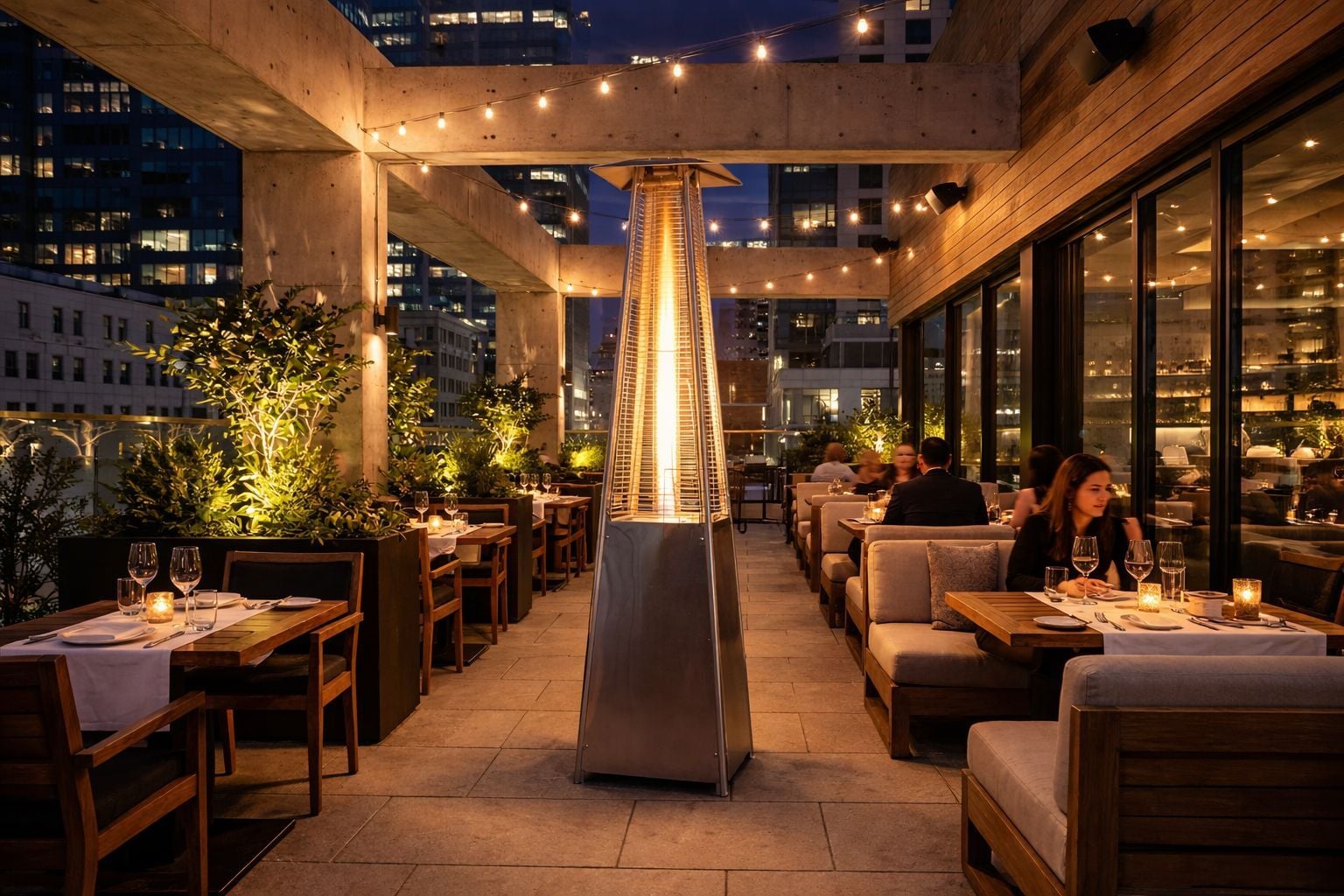 Modern dış mekan ısıtma sistemlerinde estetik, performans ve prestiji bir araya getiren Alevora® Piramit Tüplü Şömine Soba; kafe, restoran, otel ve villa projeleri için özel olarak tasarlanmıştır. Yüksek alev formu ve cam tüp içindeki dengeli yanma sistemi sayesinde hem ısıtma hem de görsel atmosfer sağlar.