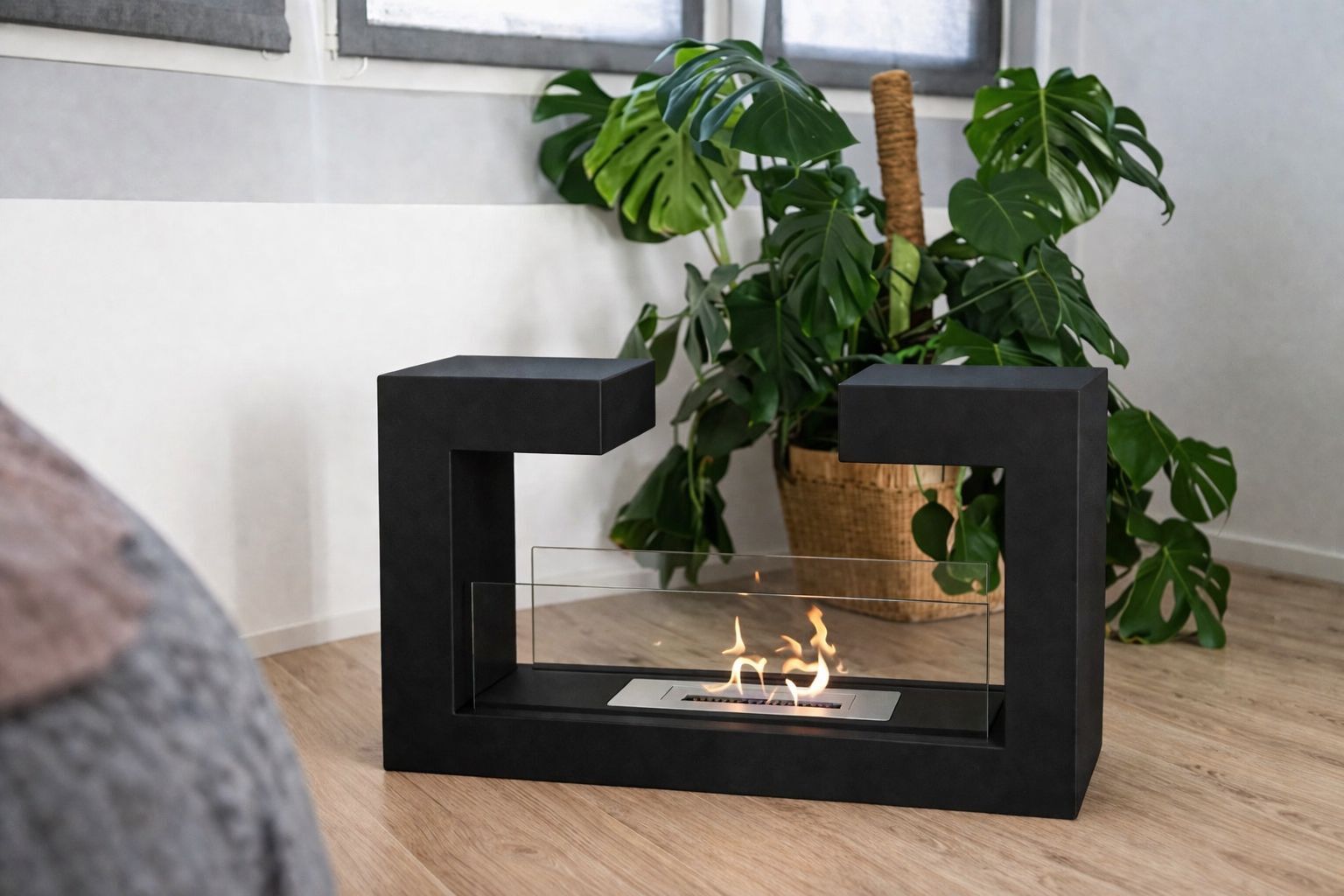Alevora Şömine Stylish Taşınabilir Bioethanol Şömine, güçlü U form tasarımı ve açık cam alev sahnesi ile yaşam alanlarında net bir mimari vurgu oluşturur. Minimal çizgisi ve keskin geometrisi sayesinde modern, loft ve çağdaş dekorasyonlara kusursuz uyum sağlar.
