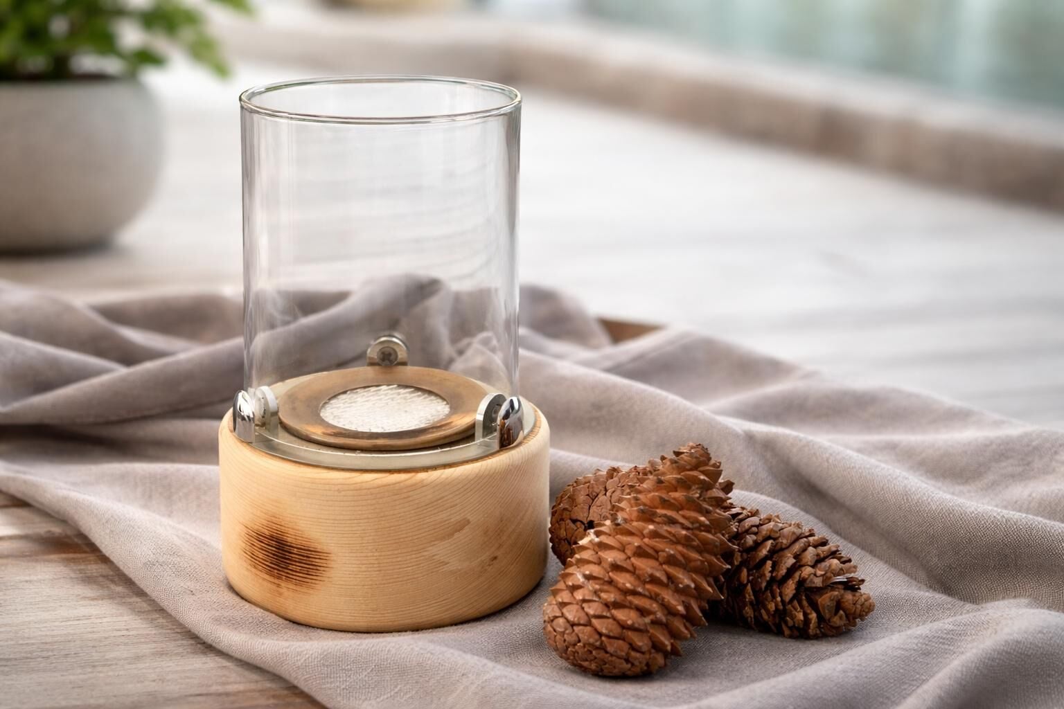 Doğal Kayın Ahşap. Silindir Form. Minimal Alev Estetiği.