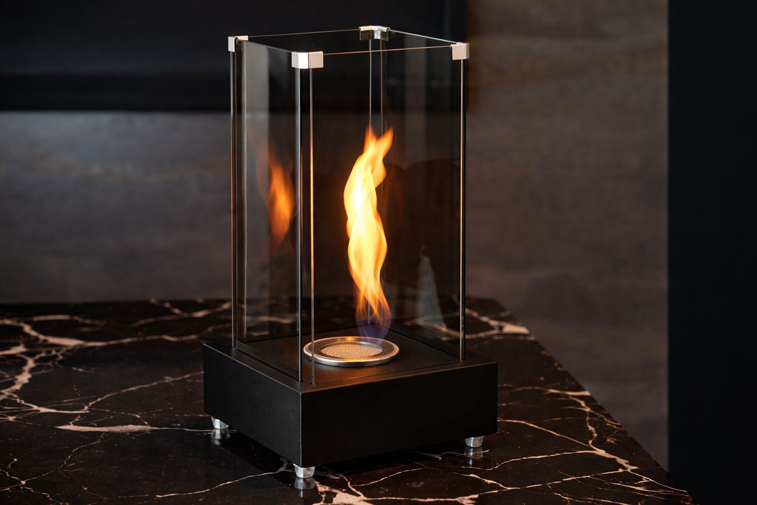 Yüksek cam tasarımı sayesinde alev rüzgâra karşı daha korunaklıdır ve görsel etkisi Mini modele göre daha güçlüdür.
