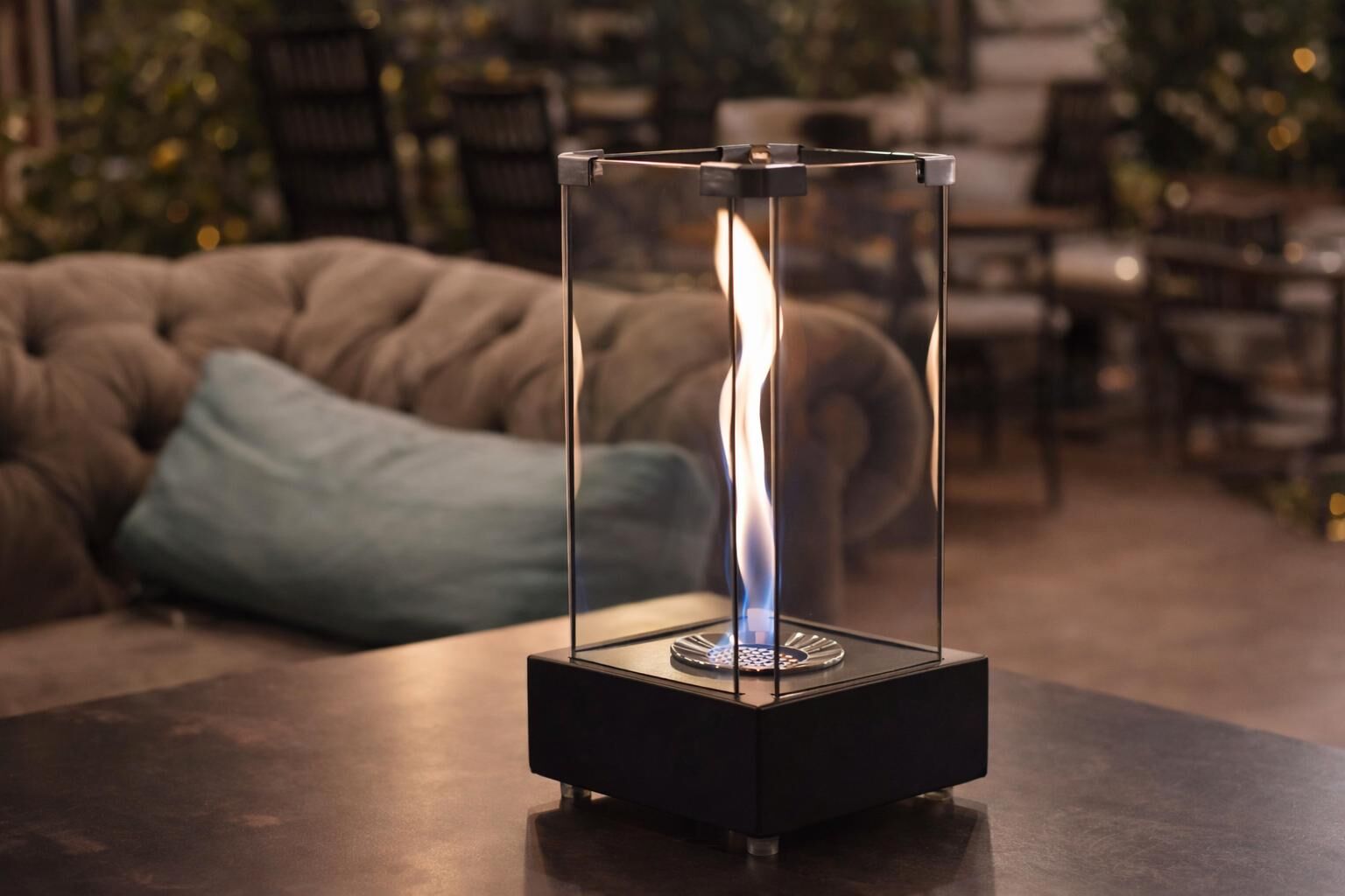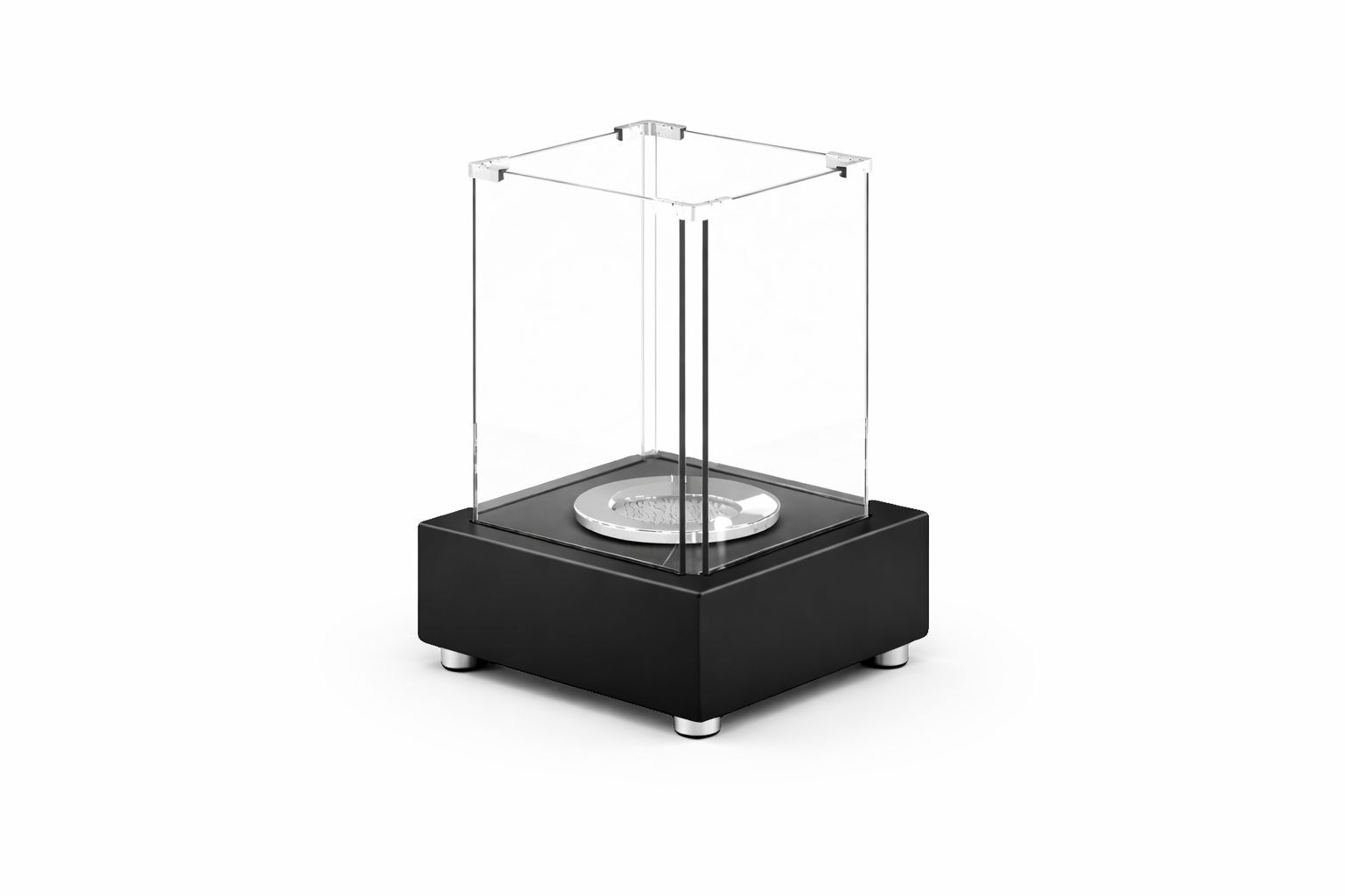 Alevora® Tornado Mini Bioethanol Şömine, dört tarafı cam korumalı kübik tasarımı ve merkezde konumlandırılmış paslanmaz çelik brülörü ile modern mekanlara kompakt bir alev deneyimi sunar.