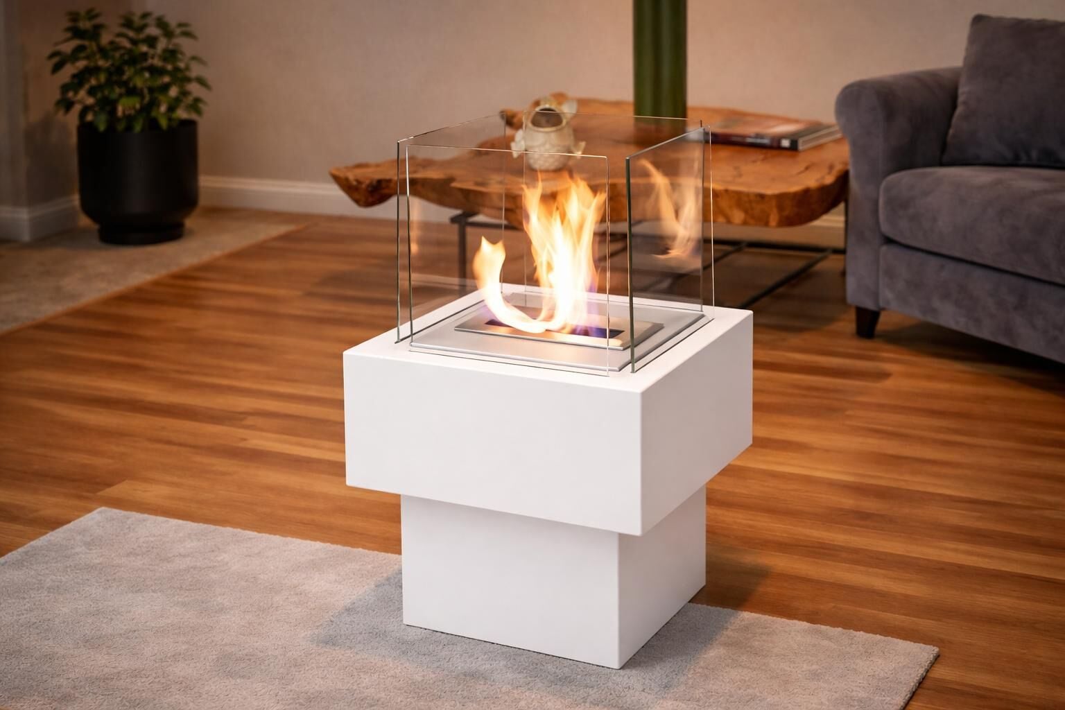Tower modeli özellikle salon köşeleri, ofis girişleri, teras ve modern konsept alanlar için tasarlanmış taşınabilir bioethanol şömine çözümüdür.