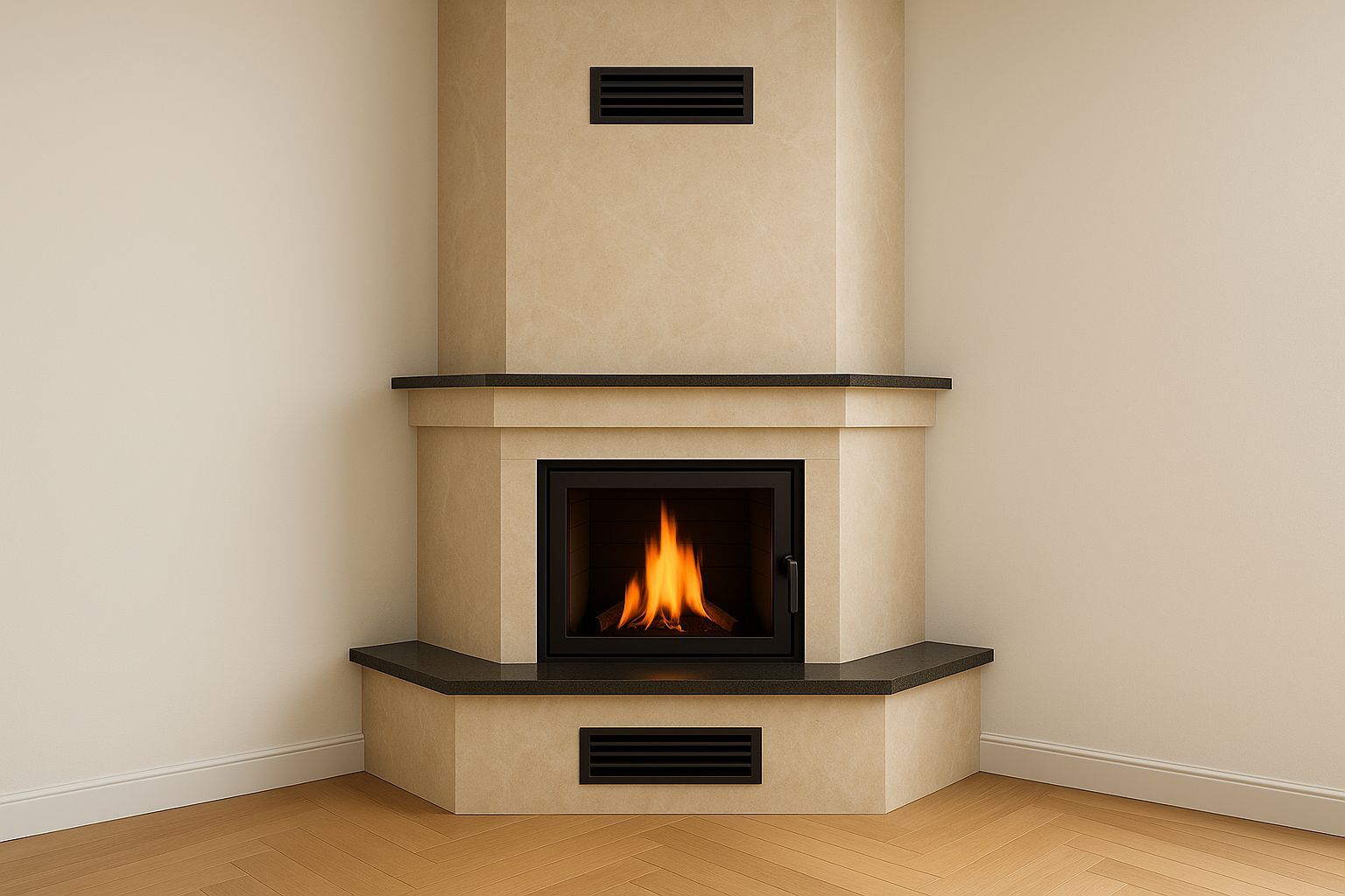 Alevora yana açılır şömine, deflektör plakası ile duman gazlarının haznede daha uzun süre kalmasını sağlayarak enerji verimliliğini artırır. Isı yansıtıcı arka plaka, hazneyi korurken ısının mekâna geri yansıtılmasına katkı sağlar. Baca klapesi kontrolü, yanma hızının dengelenmesini ve ısı çıkışının optimize edilmesini mümkün kılar. Doğal konveksiyon kanalları, sıcak havanın odada dengeli şekilde yayılmasını sağlar. Küllük çekmecesi ise temizlik sürecini kolaylaştırarak pratik kullanım imkânı sunar.