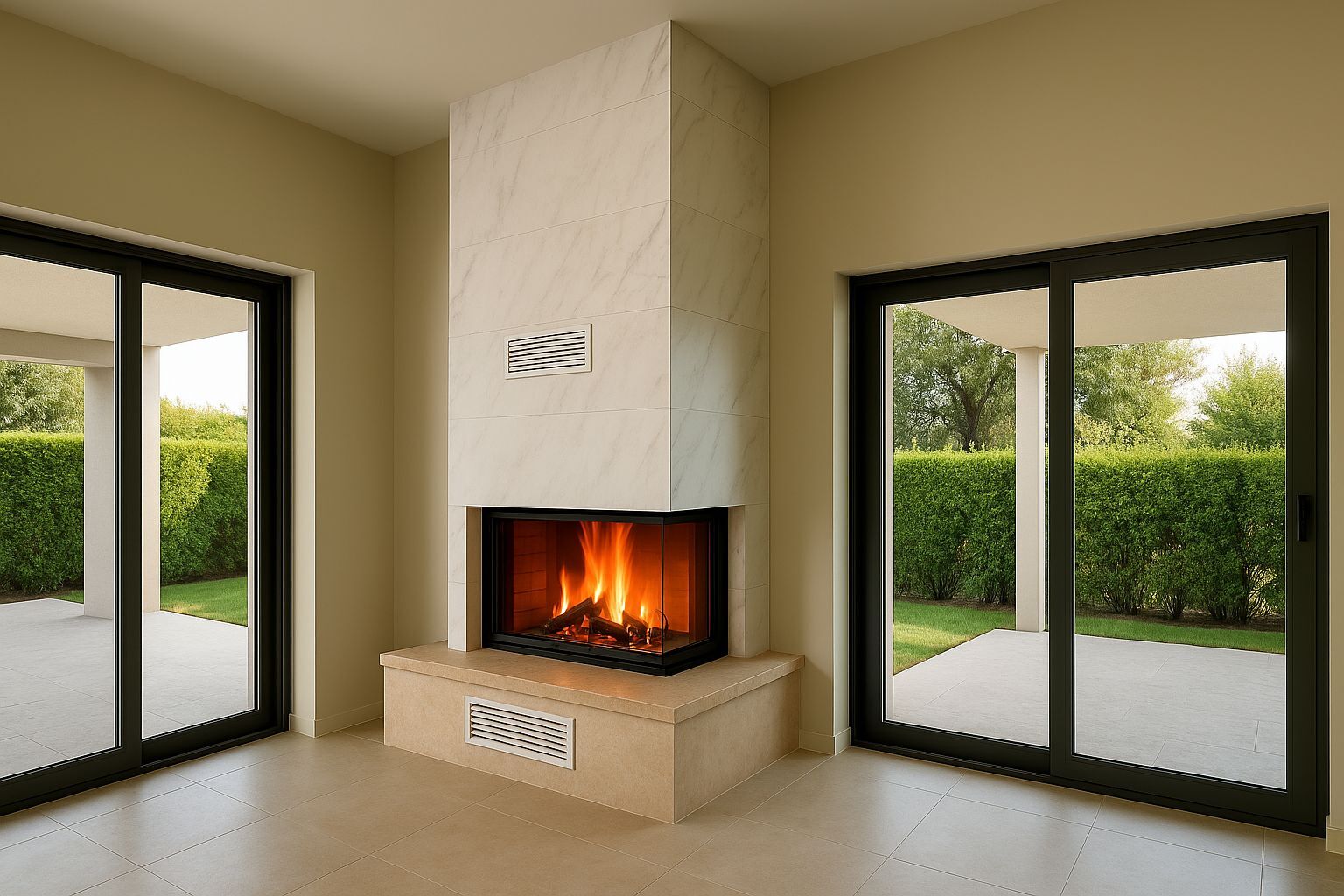 1200°C’ye kadar dayanıklı seramik cam, yüksek sıcaklıklarda güvenli kullanım sunar. Cam paneller yukarı kaldırıldığında geniş bir ateş manzarası sağlanırken, kapalı konumda emniyetli bir ısınma deneyimi sunar. Böylece asansörlü şömine, yalnızca dekoratif bir unsur değil aynı zamanda güçlü bir ısı kaynağıdır.