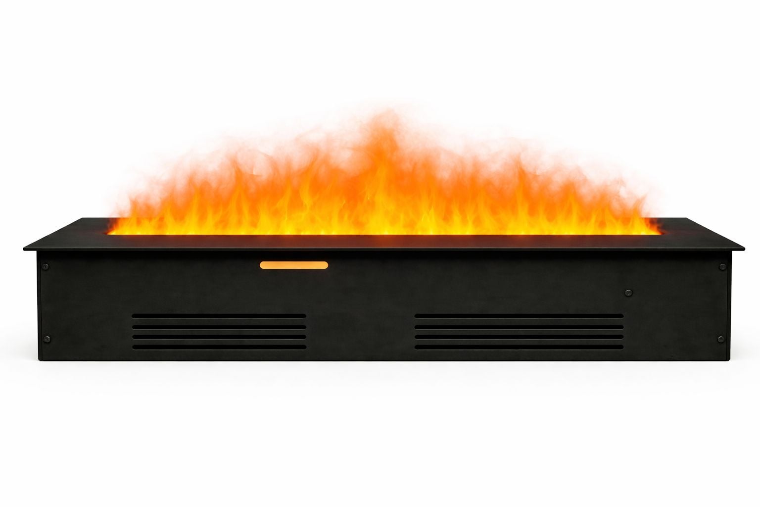 Alevora Şömine Vudlas VD150, 150 cm ultra genişliğinde etkileyici bir alev sahnesine sahiptir. Hibrit su buharı + LED alev teknolojisi kullanarak üç boyutlu, son derece gerçekçi bir alev görünümü sunar. Alev yoğunluğu, buhar seviyesi ve ambiyans ışığı tamamen ayarlanabilir. İsteğe bağlı çıtırtı ses efekti ile işitsel bir atmosfer tamamlayıcısıdır. Isıtma özelliği yoktur, tamamen dekoratif amaçlıdır. Tüm fonksiyonlar kapsamlı bir uzaktan kumanda ile kontrol edilir. Modern siyah çerçeve tasarımı, büyük salonlar, lobiler, restoranlar ve geniş mimari alanlar için ideal, lüks bir elektrikli şömine çözümüdür.