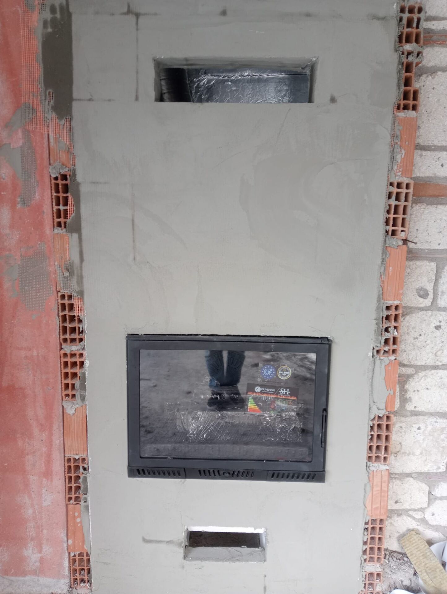 Sıva Hazırlığı: Kalekim sıva ile yüzey kaplanır ve şömine dekoratif kaplamalara hazır hâle gelir.