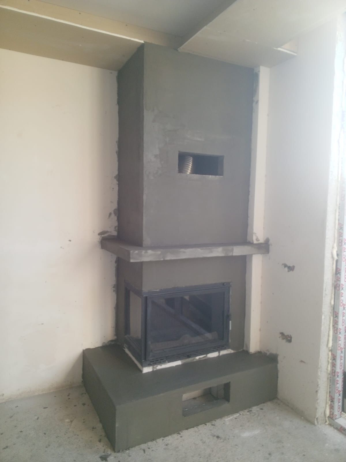 Alevora Şömine kaba uygulama yana açılır L model şömine;