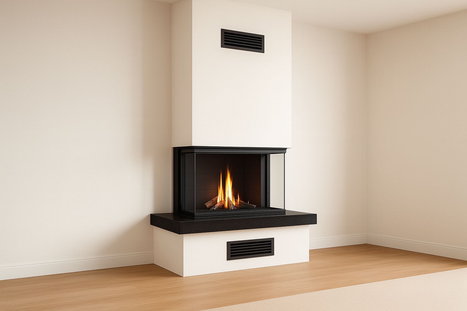 Modern mimarinin temel ilkeleri olan denge, simetri ve açıklık, Alevora şömine U tipi odunlu şöminelerin tasarımında ön plandadır. Üç cam yüzeyli yapı, minimal ama güçlü bir duruş sergiler.