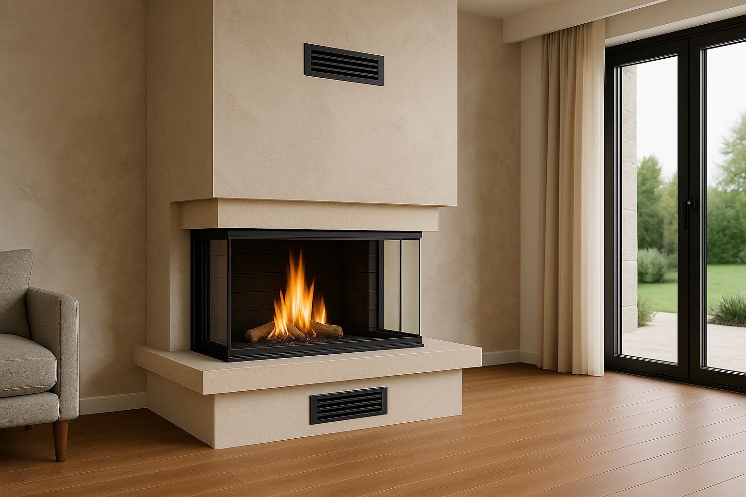 Kapalı cam konumunda çalışan sistem, klasik açık şöminelere kıyasla %80’in üzerinde ısı verimliliği sunar. Alt ve üst menfezlerden oluşan hava sirkülasyon sistemi sayesinde sıcak hava mekâna dengeli biçimde yayılır.