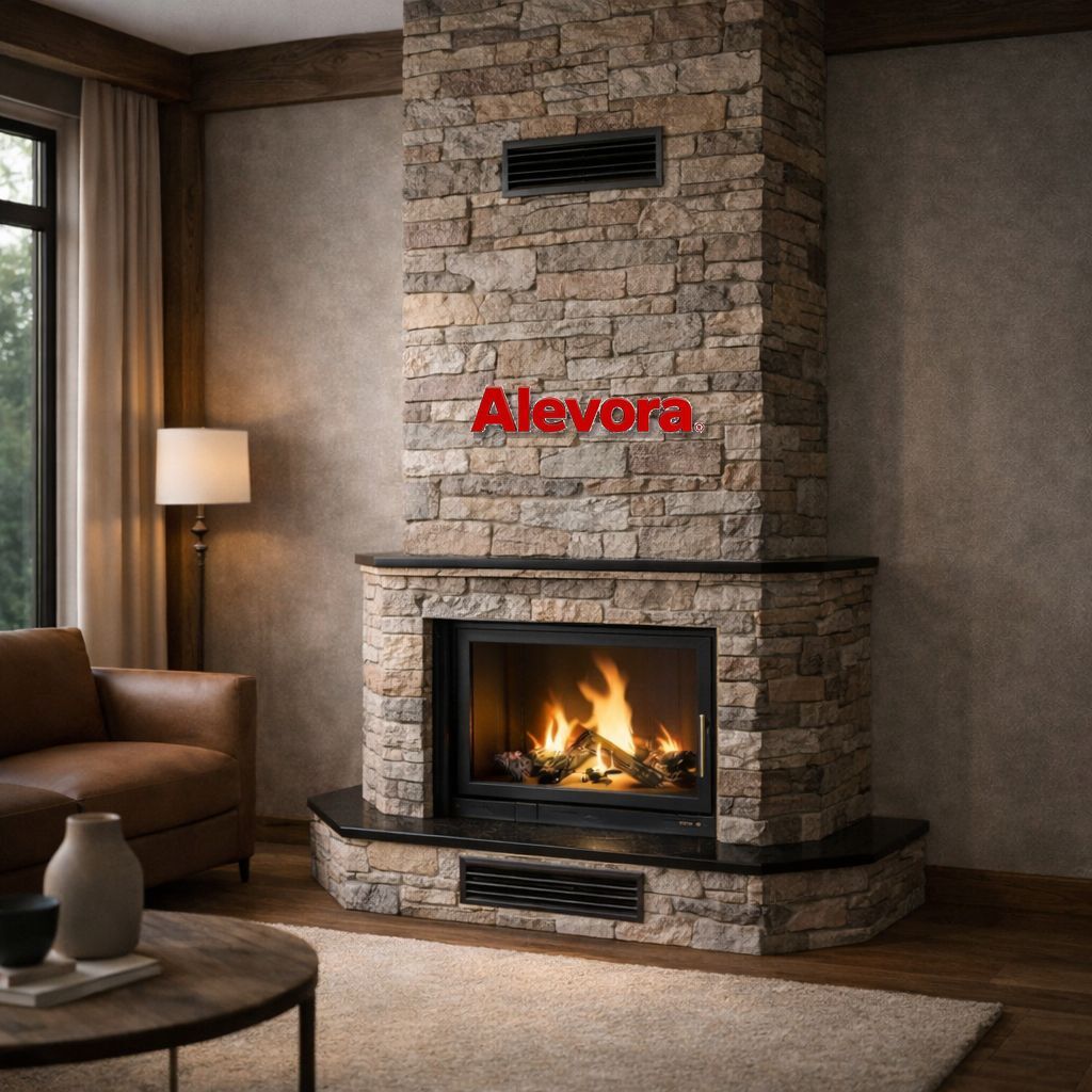 Bu projede uygulaması tamamlanan sistem, doğal taş dokusu ile tasarlanmış karakterli bir odunlu şömine çözümüdür. Rustik taş kaplama yüzey, siyah tabla geçişi ve dengeli menfez yerleşimi ile hem güçlü hem sıcak bir atmosfer oluşturulmuştur. Alevora® uzman ekibi tarafından gerçekleştirilen bu odunlu şömine montajı, estetik ve mühendislik disiplininin bir araya geldiği planlı bir uygulama süreci sonunda tamamlanmıştır.